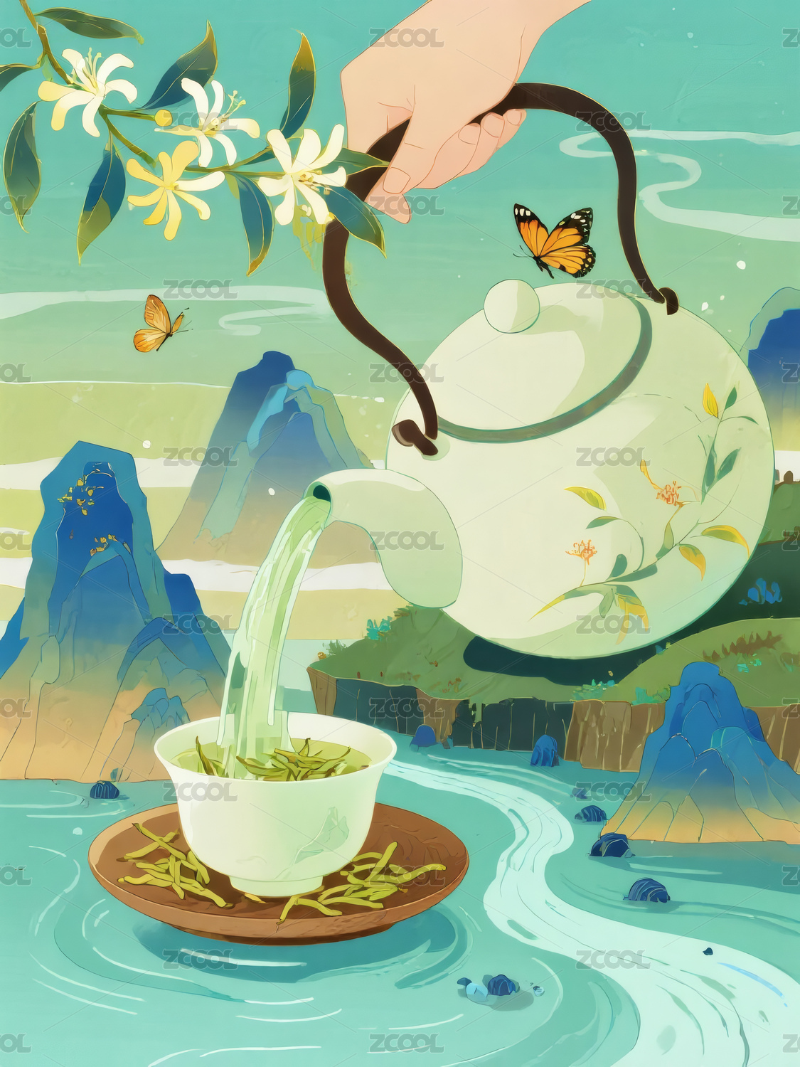 食品,美食,食物,中国传统节气,插画,谷雨,春天,茶,谷雨茶,茶叶