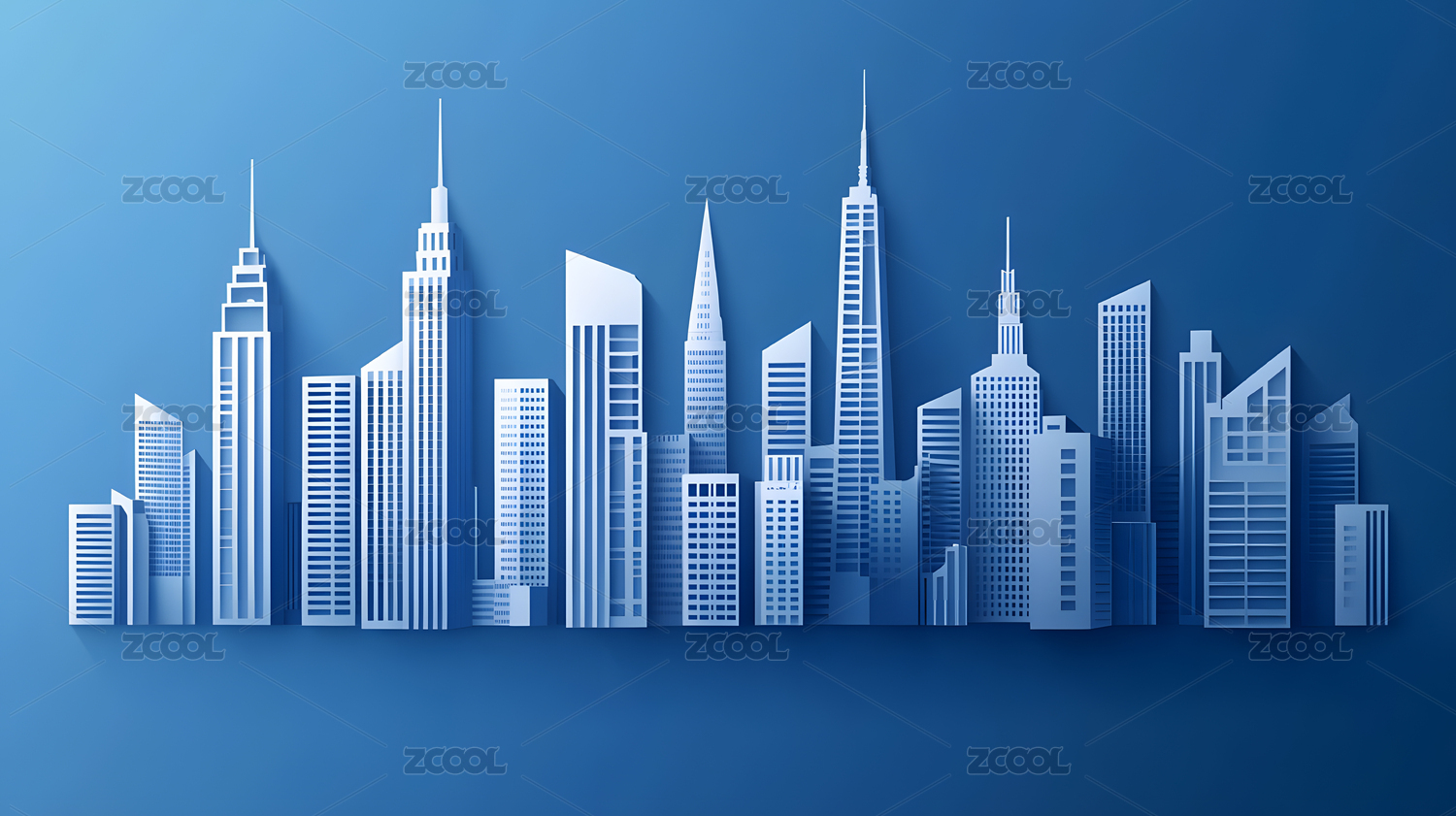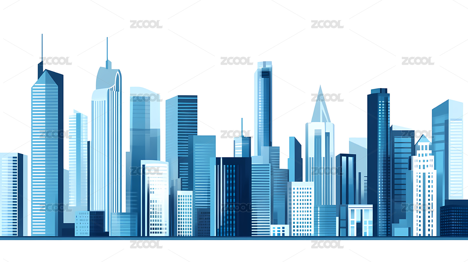 蓝色背景下的城市建筑