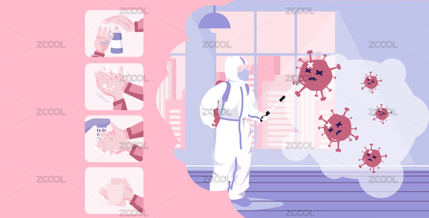 戴口罩医护人员喷洒酒精杀毒杀菌插画