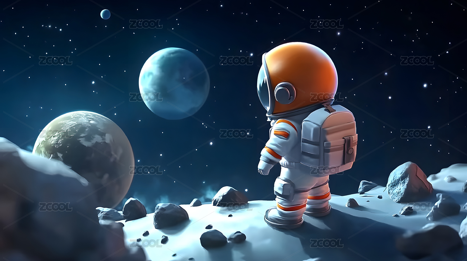 宇宙星球太空宇航员3D手办插画