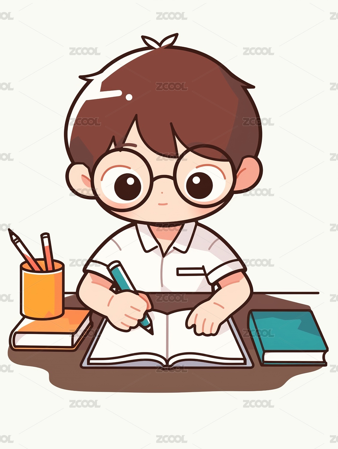 写作业的学生卡通可爱元素插画
