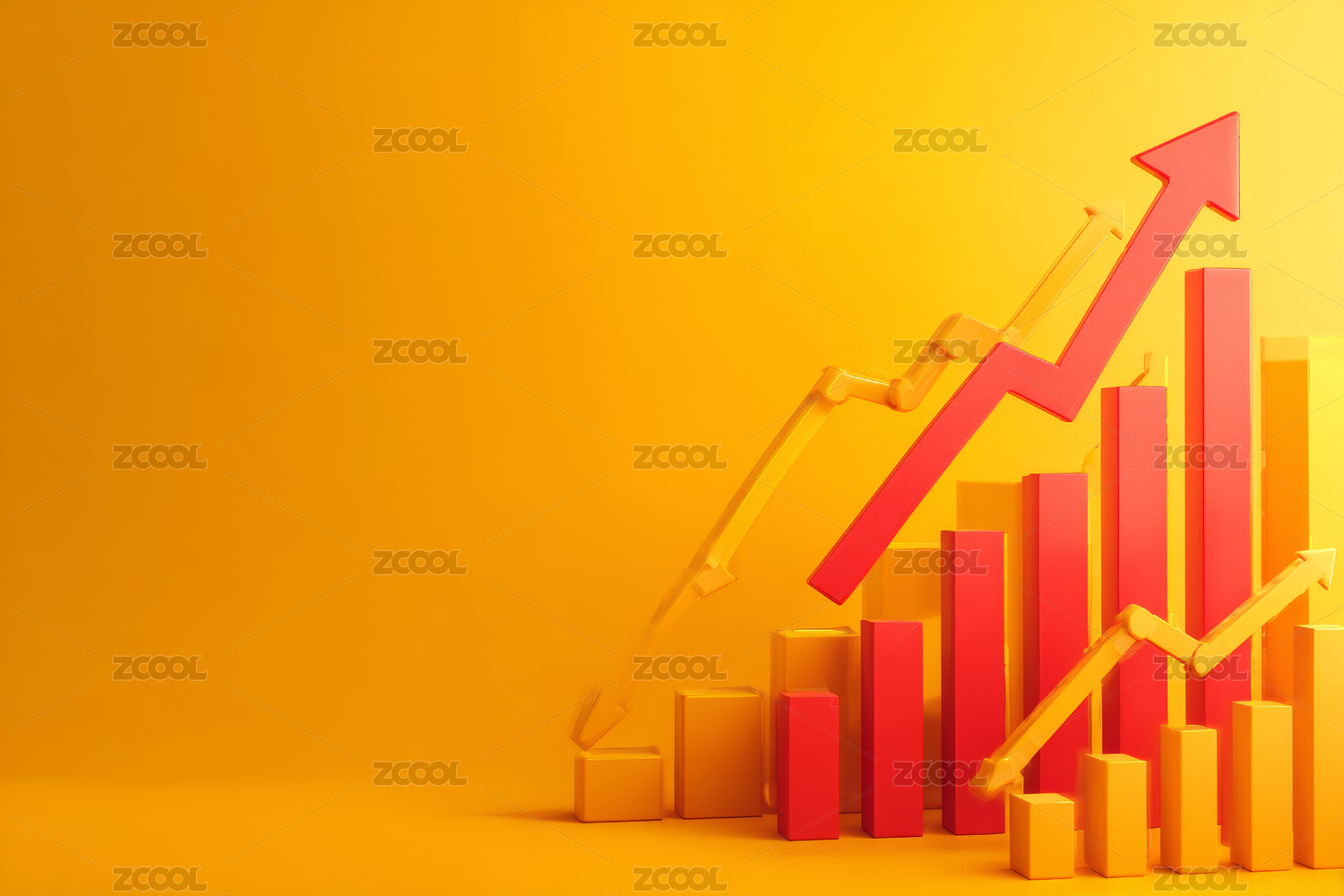 橙色渐变玻璃质感金融柱状图增长箭头背景