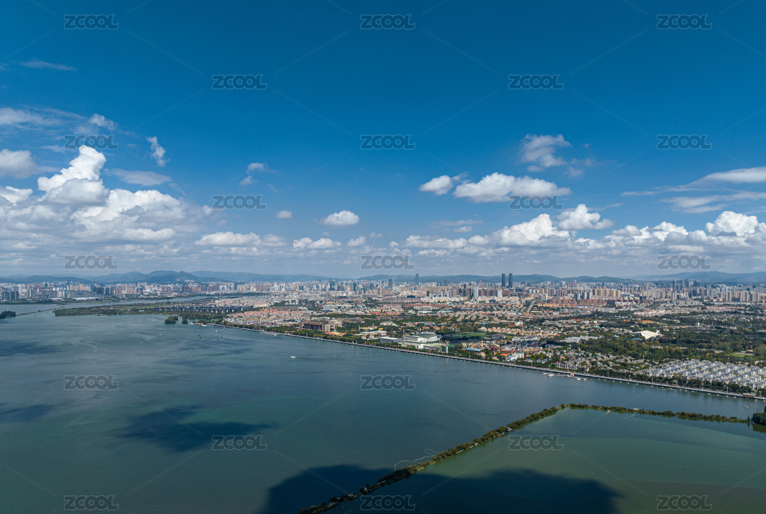 昆明市滇池海埂公园和昆明双塔城市风光白昼