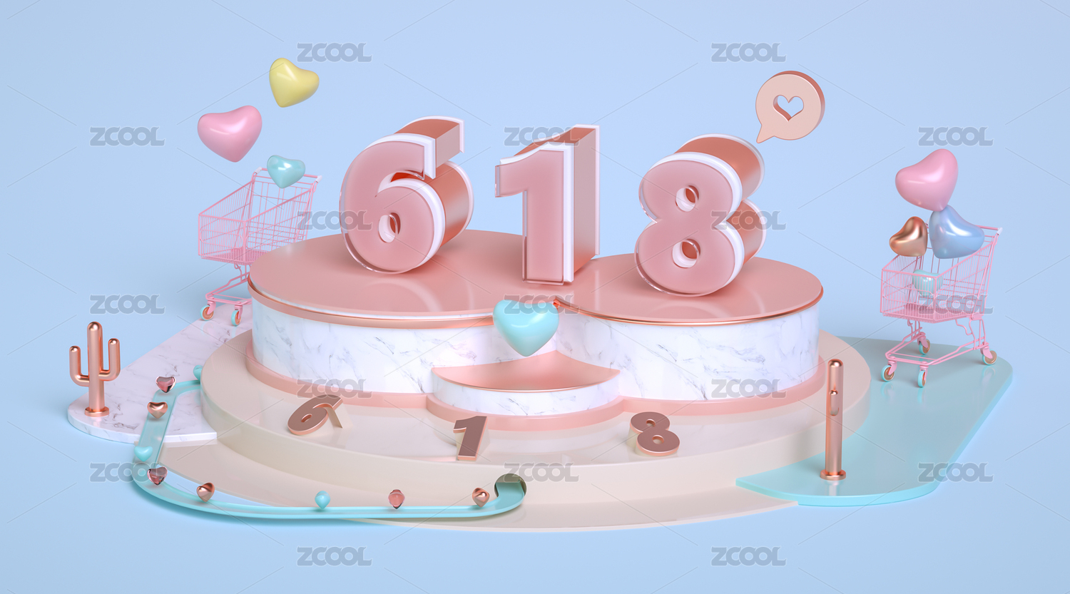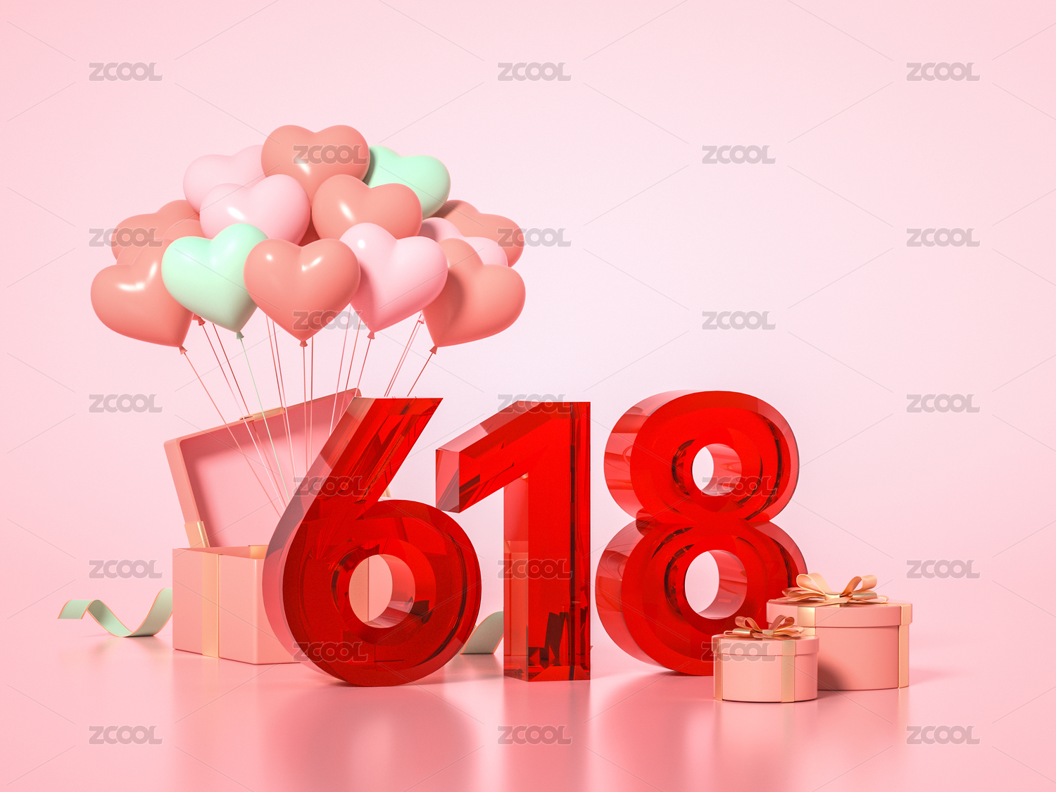 618,立体数字,礼盒,爱心,电商展台,气球,温馨,女性化