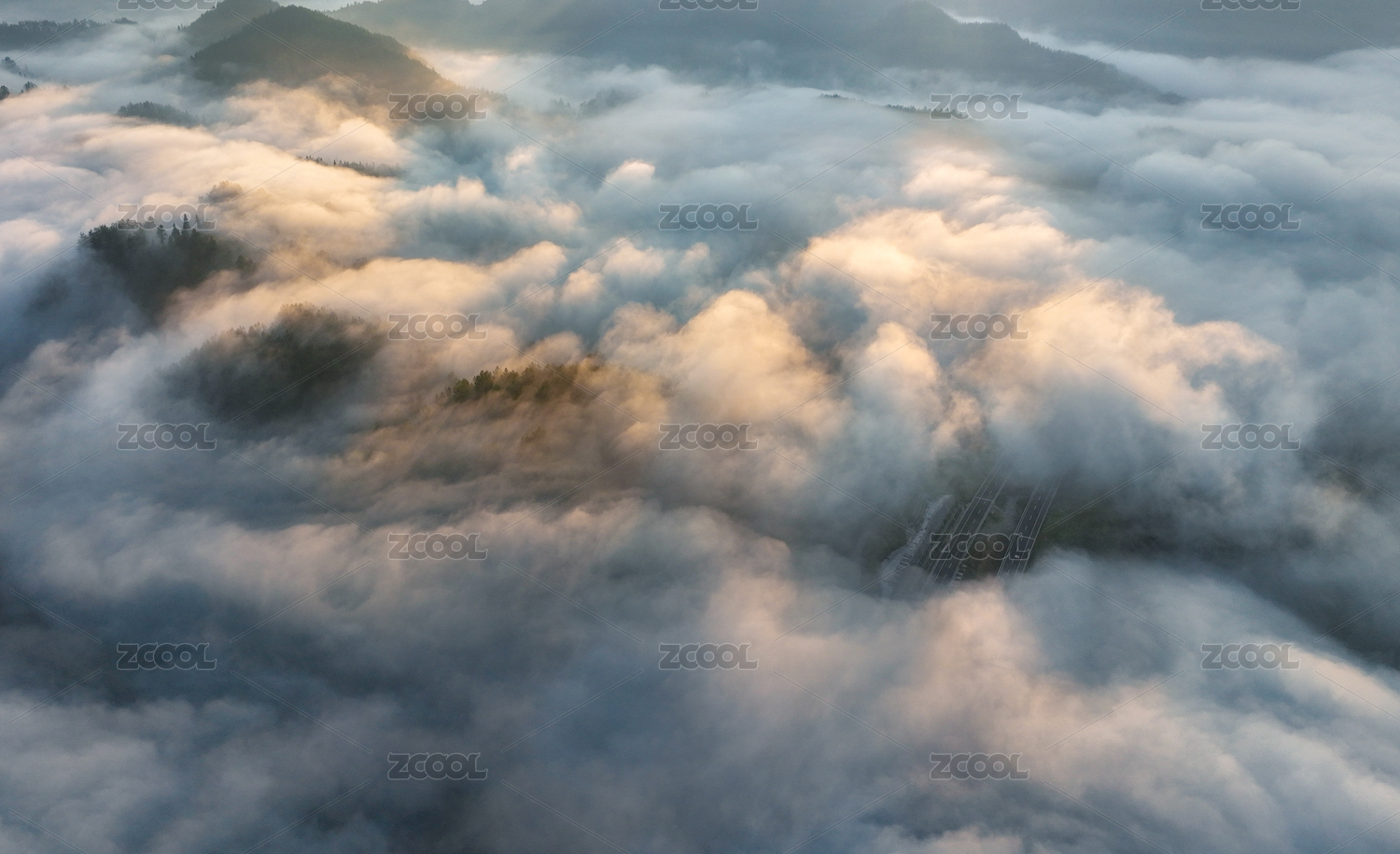 亚洲,中国,重庆,酉阳,乡村,清晨,平流雾,美景,雾气氤氲