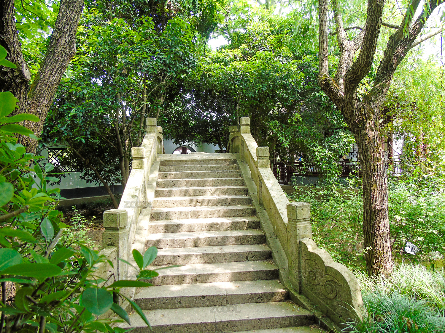 福州屏山公园里上山的台阶和树木,曲径通幽