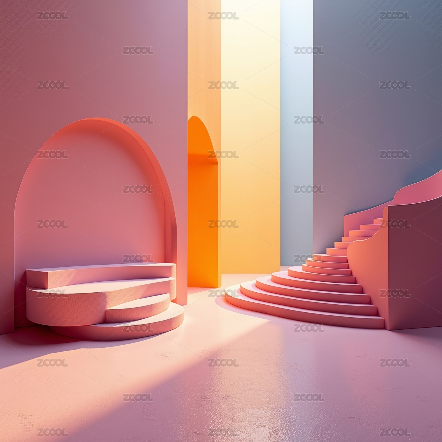 红色,圆环,楼梯,现代,艺术,建筑,几何,光影,室内设计,抽象
