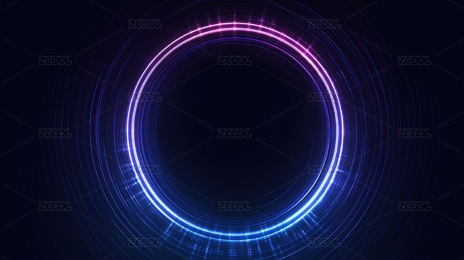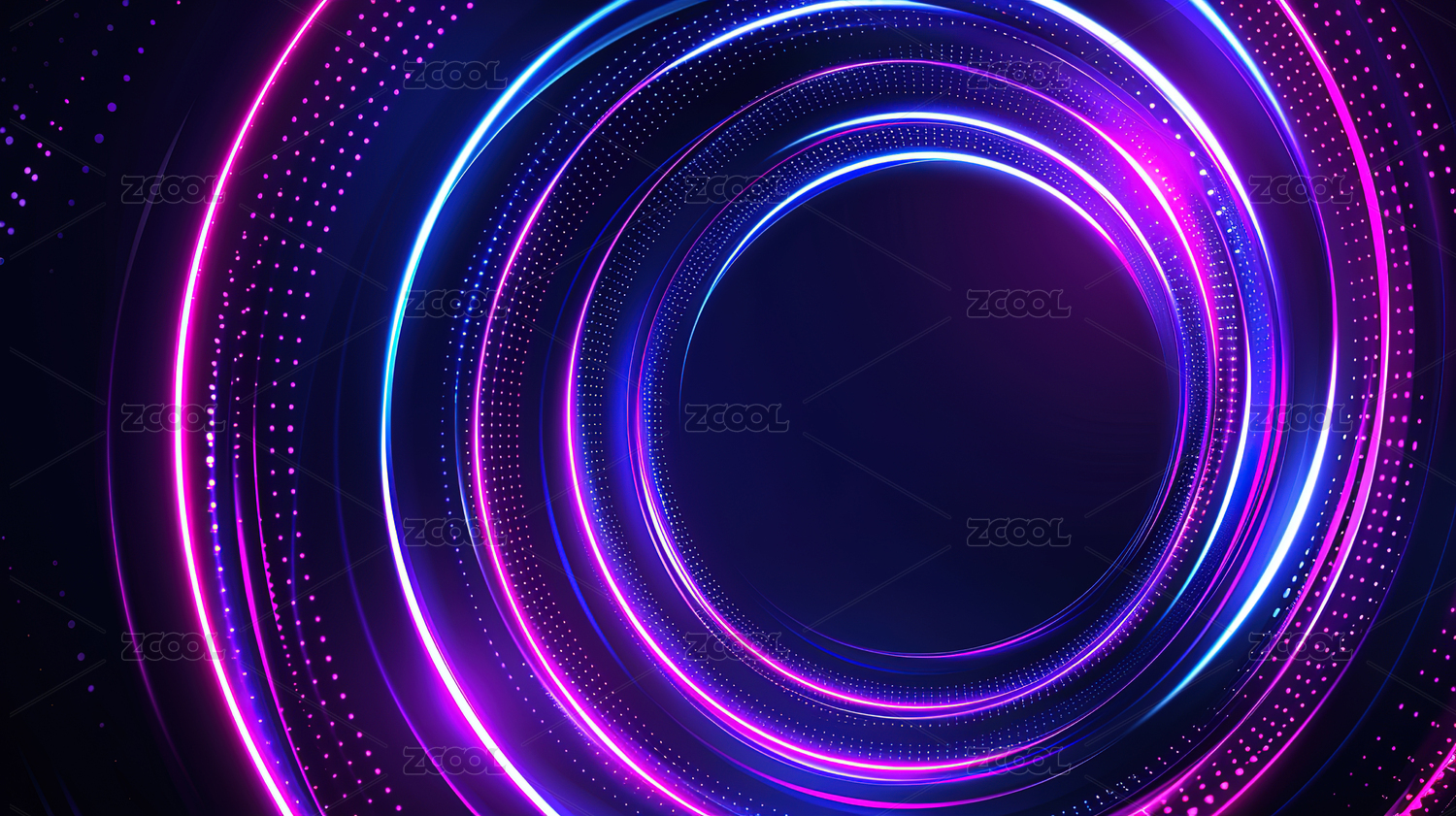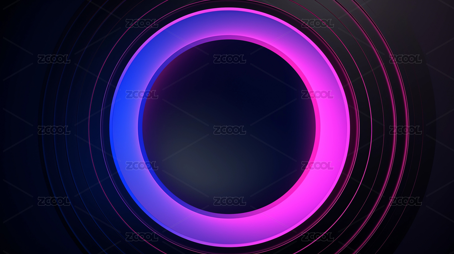 数码蓝粉圆形霓虹灯抽象图形海报网页背景