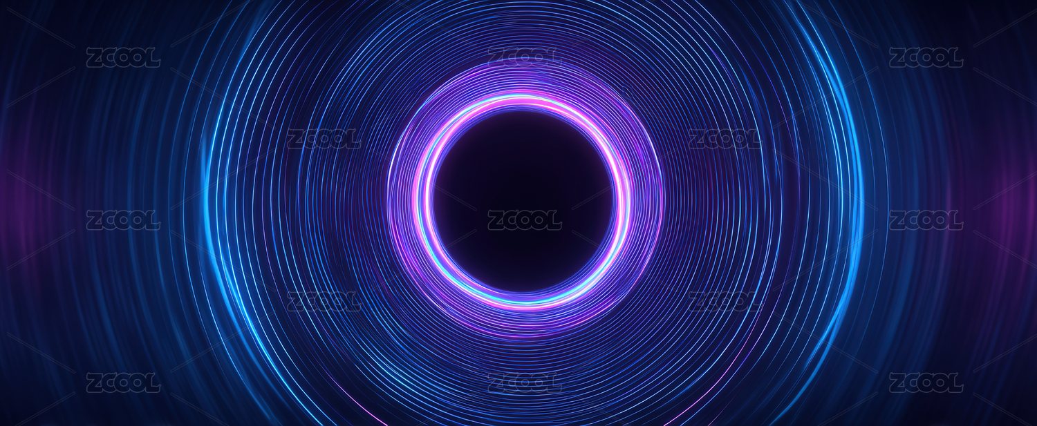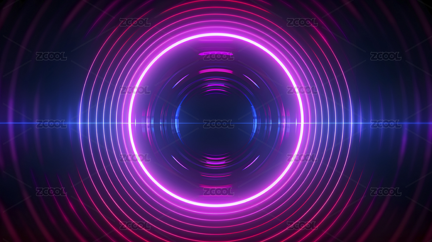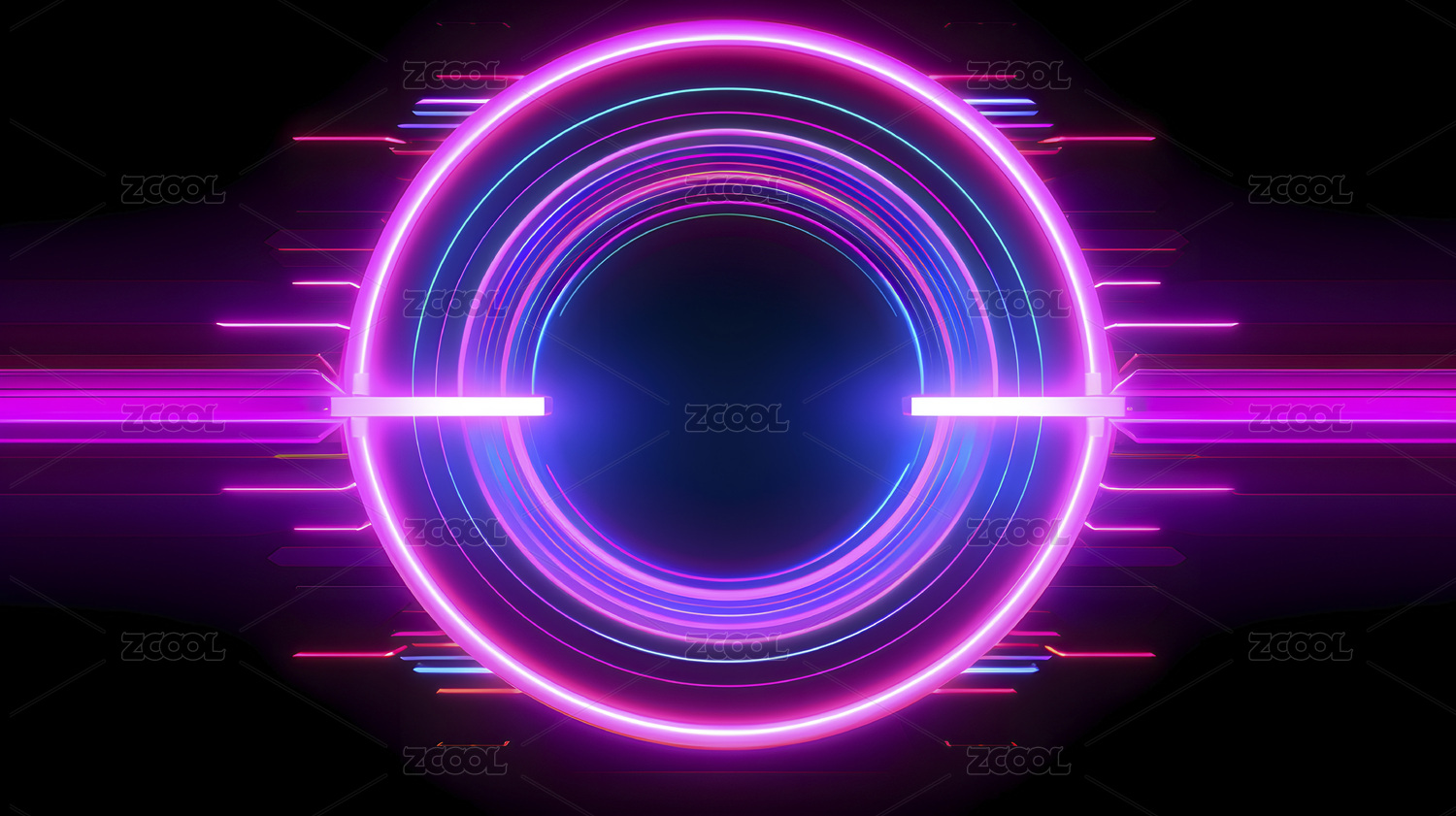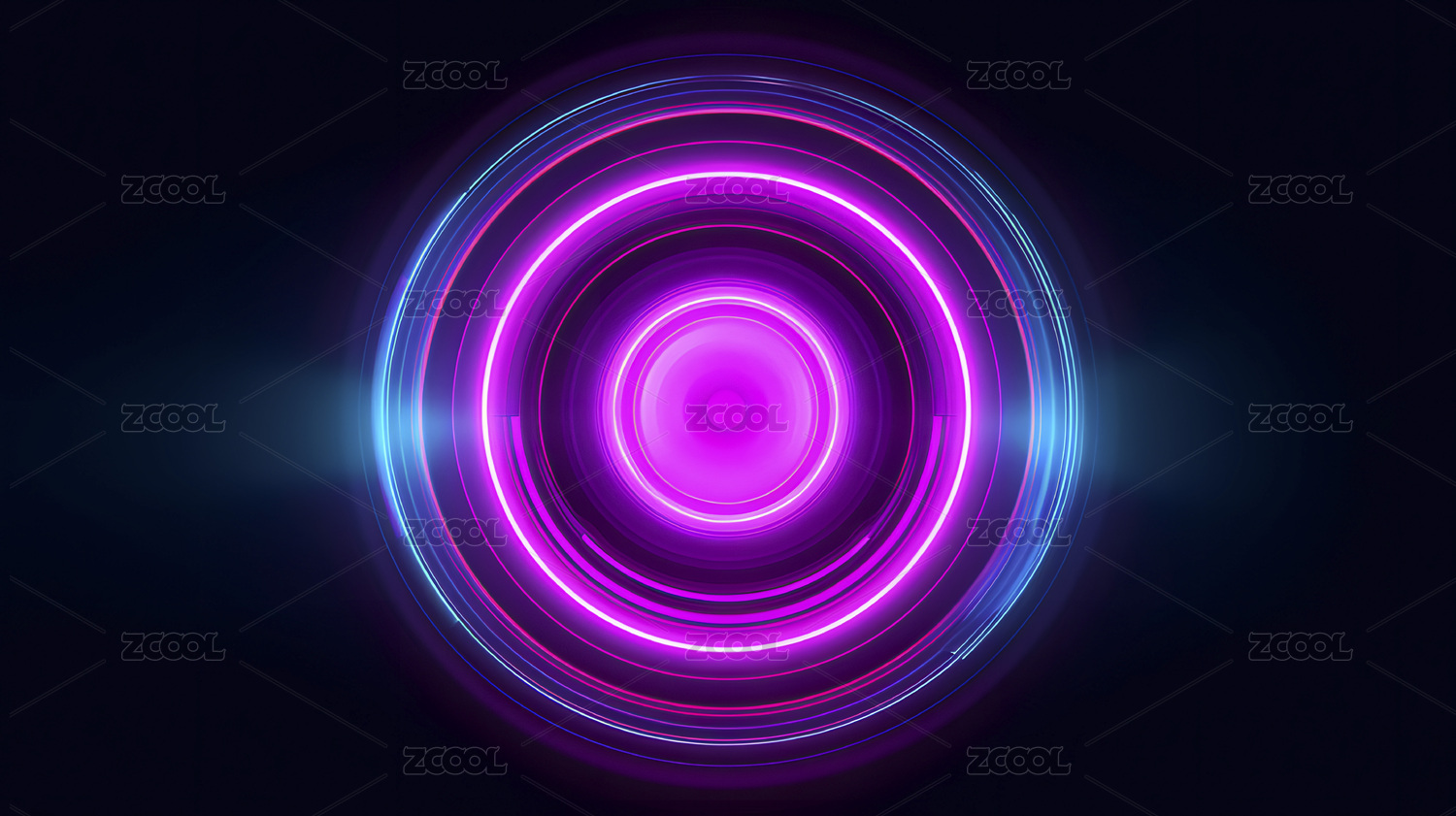 数码蓝粉圆形霓虹灯抽象图形海报网页背景