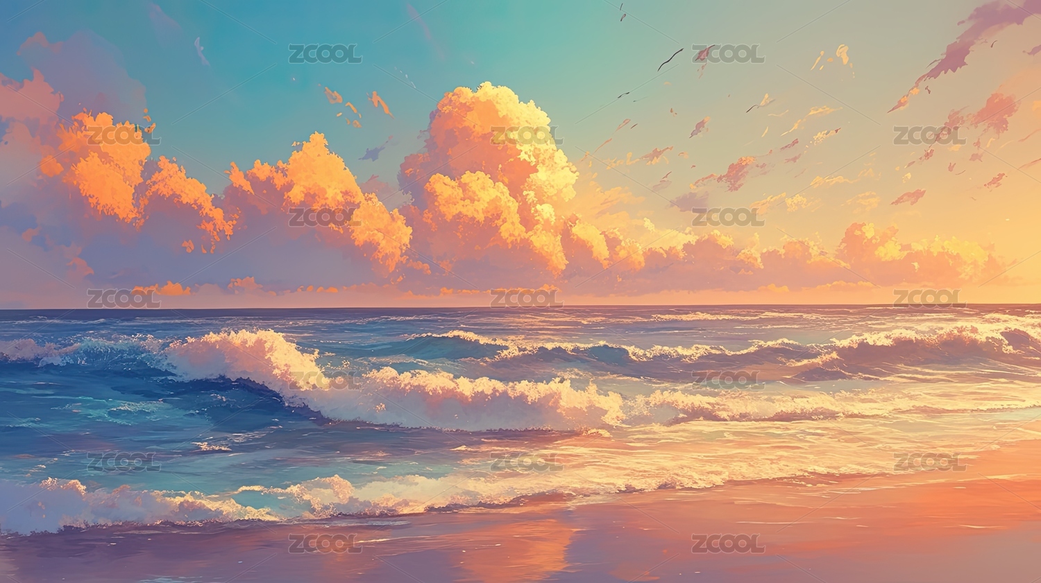 夕阳映照的梦幻海浪