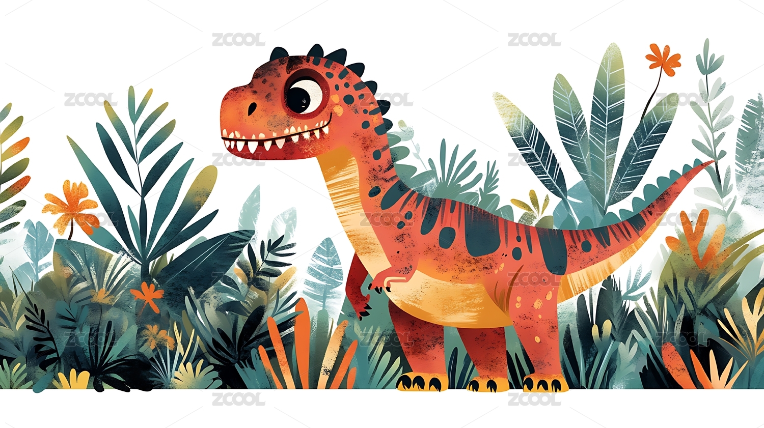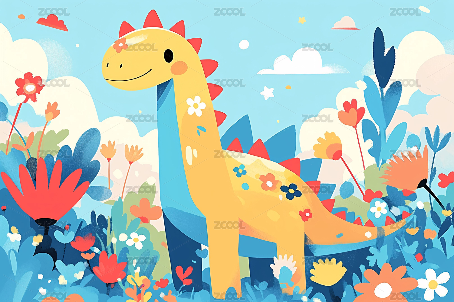 恐龙插画野生动物可爱卡通儿童节海报背景