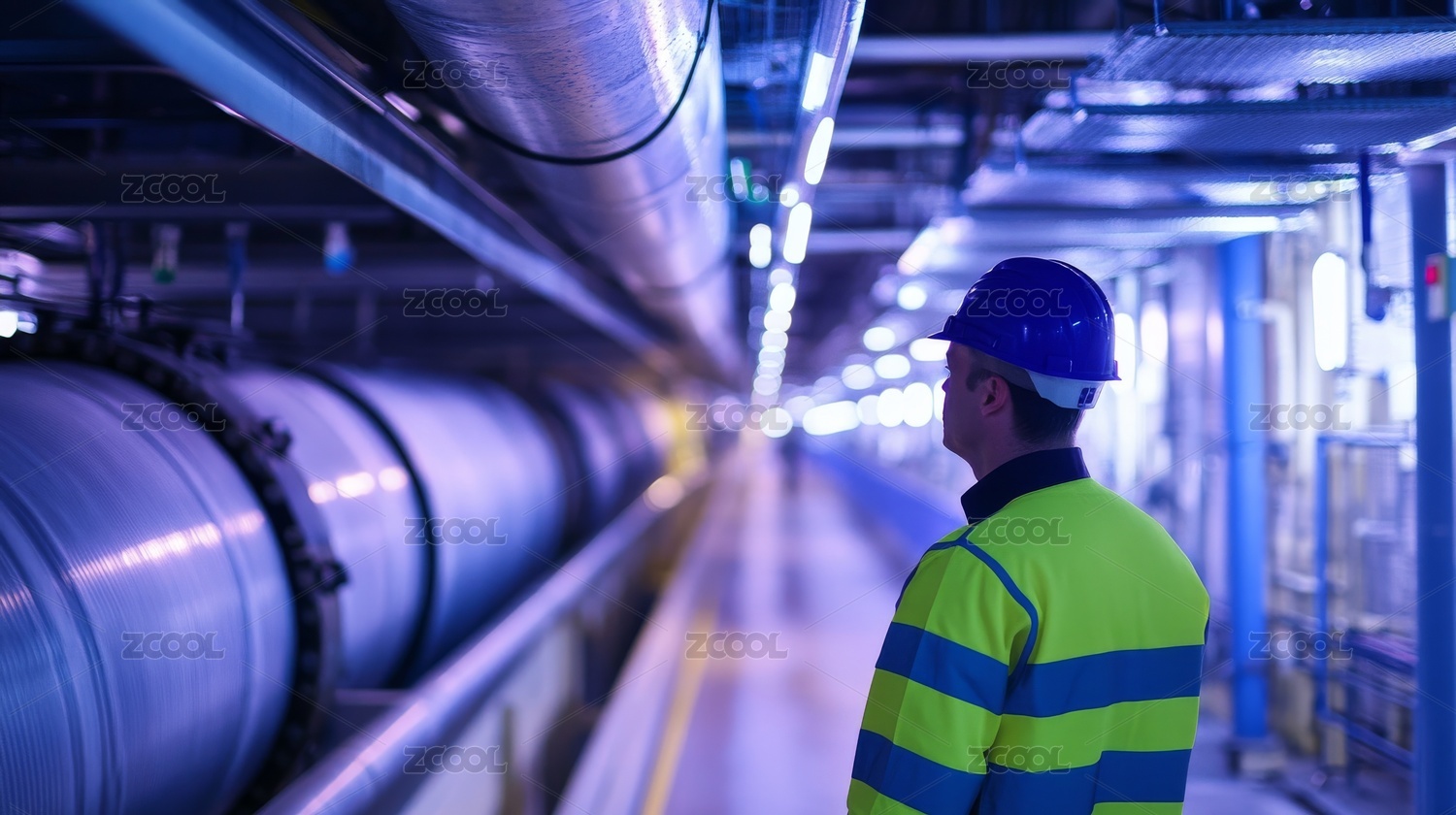 DXCZ202406,技术员,男性,背影,控制台,工厂,橙色背心,科技,工业,现代设备