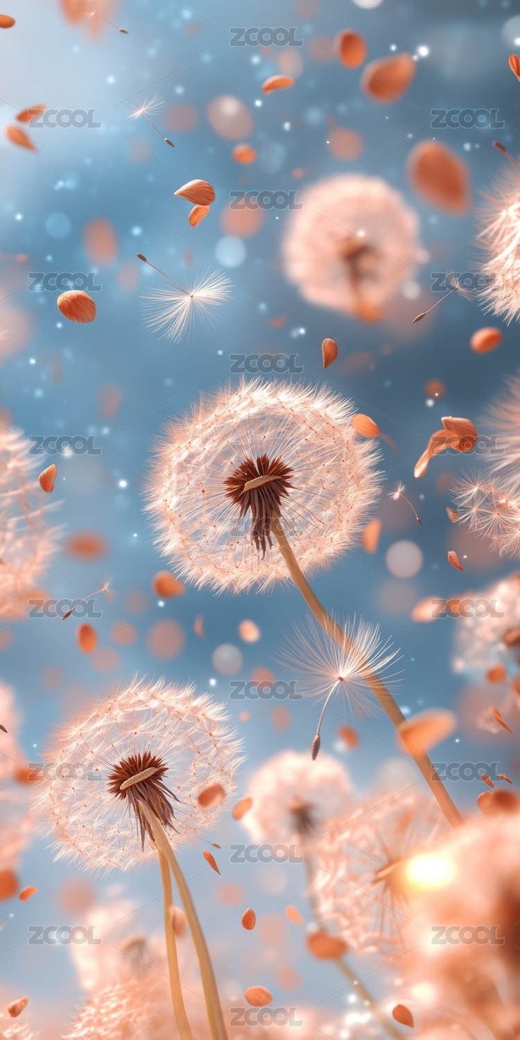 飞舞的蒲公英种子梦幻背景图