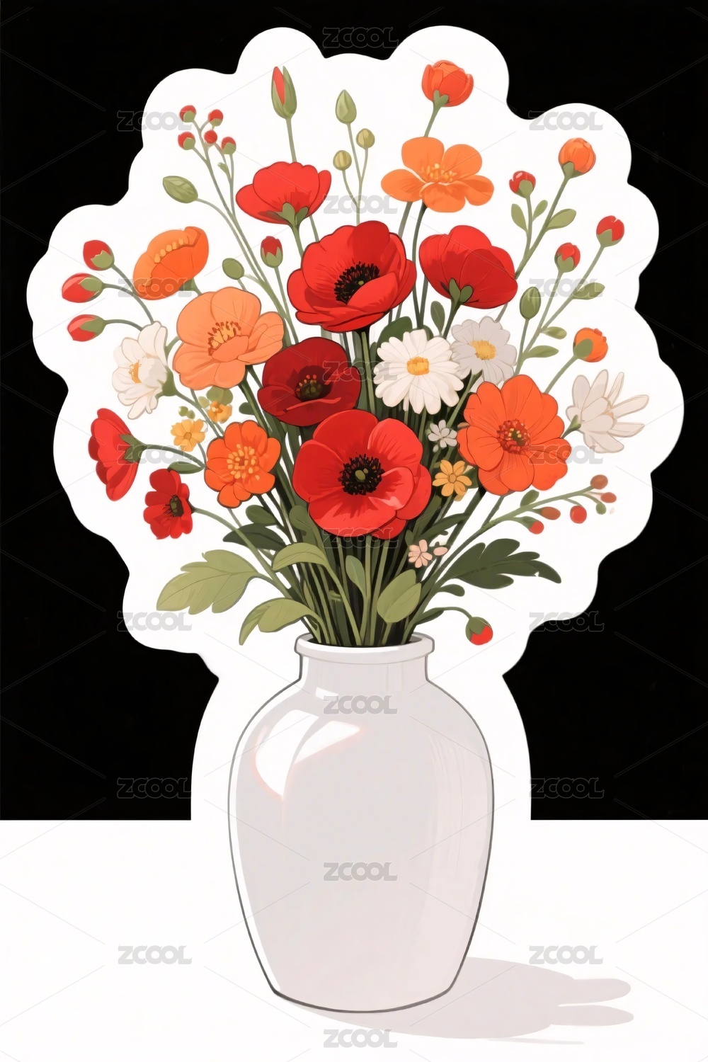 花瓶,多彩,插画,花卉,花朵,复古,色彩,艺术,油画,抽象