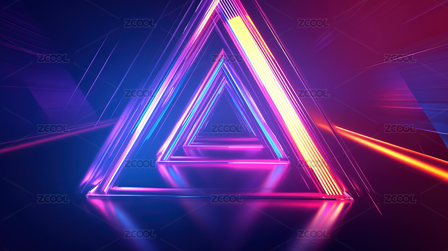 抽象霓虹灯发光几何线条3D渲染商务背景
