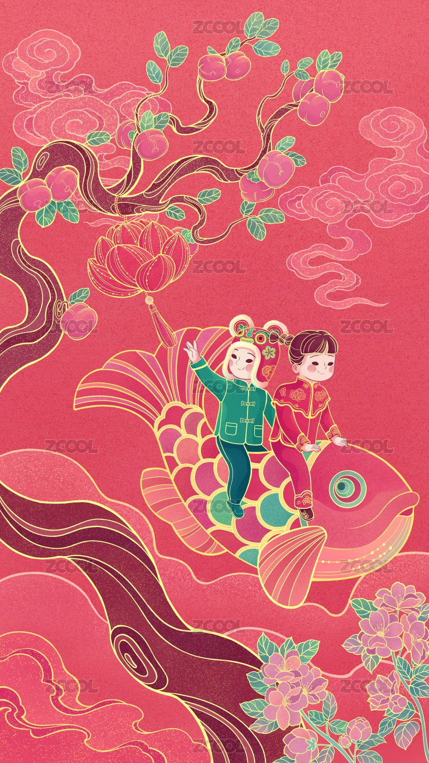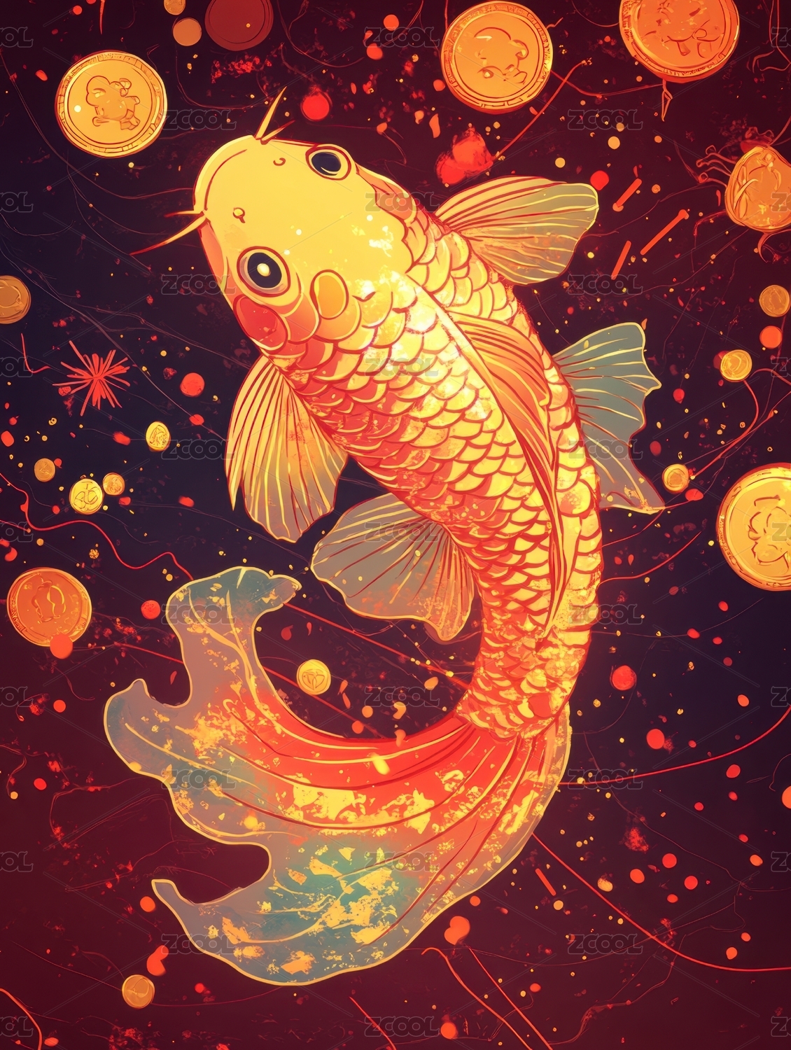新年,锦鲤,鲤鱼,红包,发财,好运