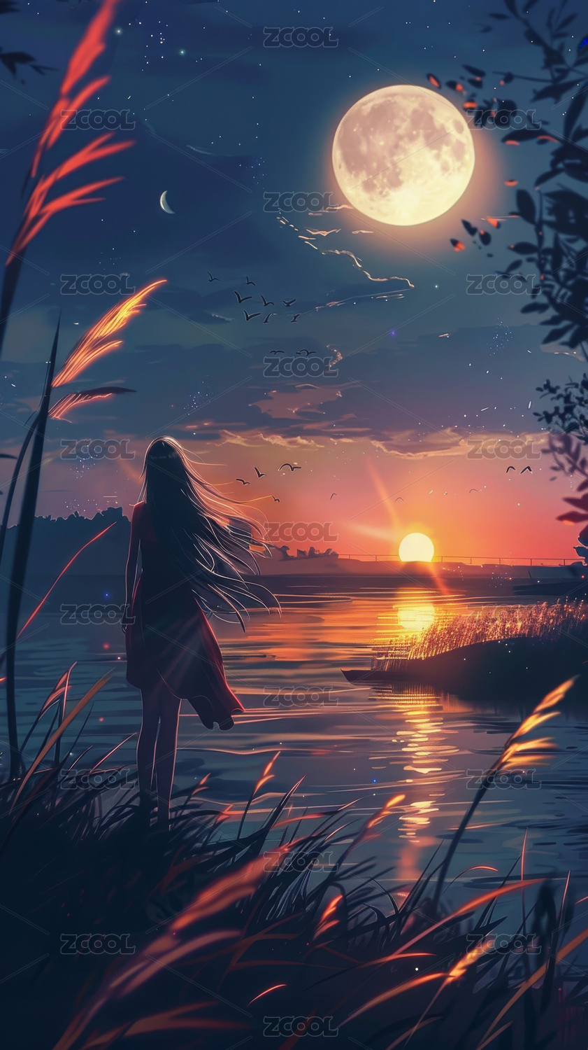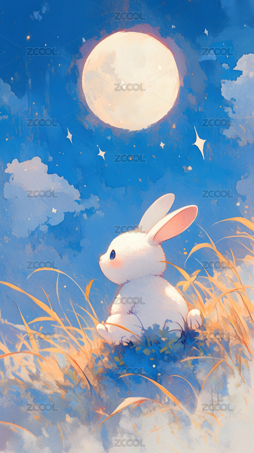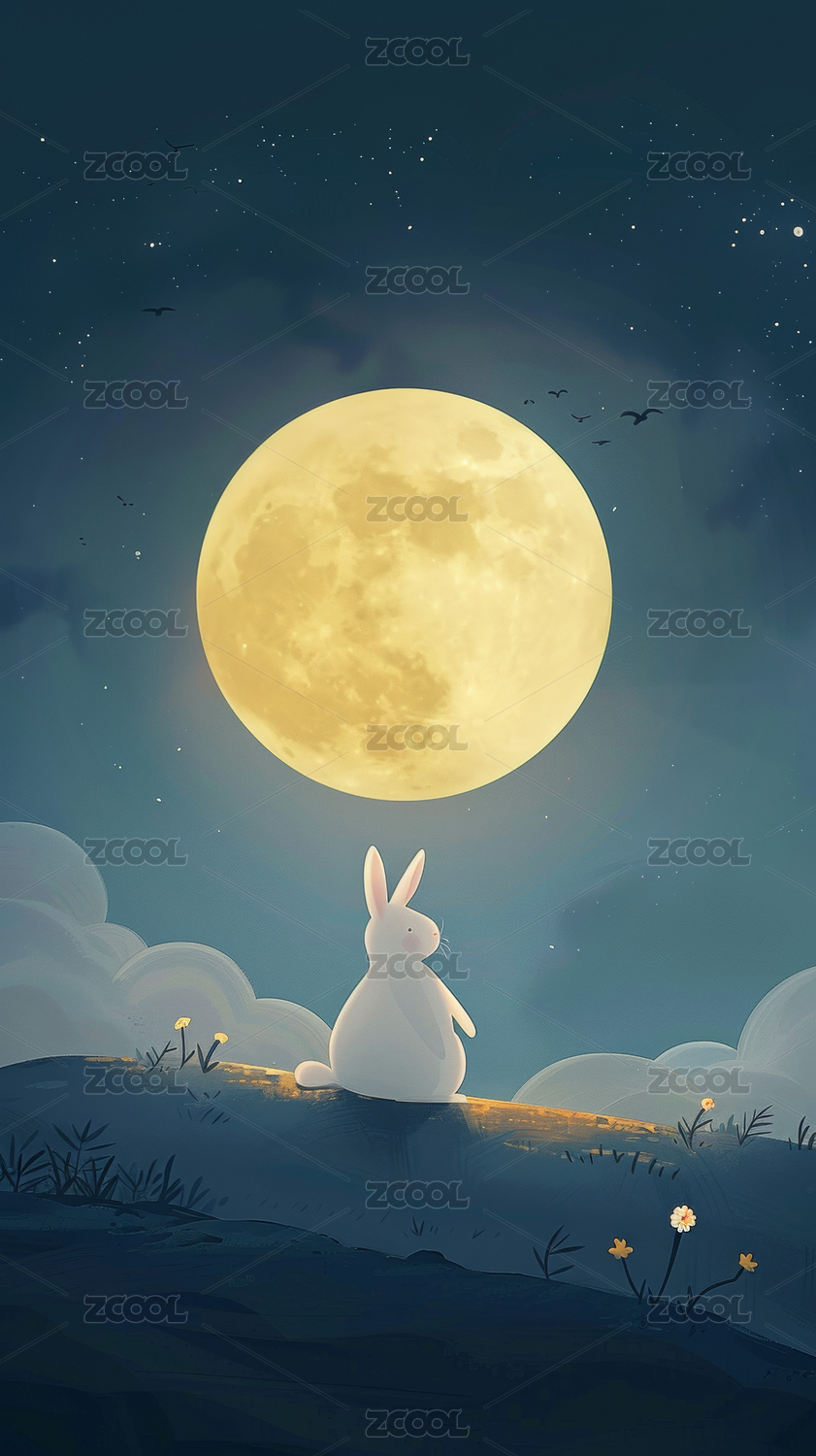 女孩,兔子,耳朵,头饰,月亮,月光,光,晚上,户外,岩石