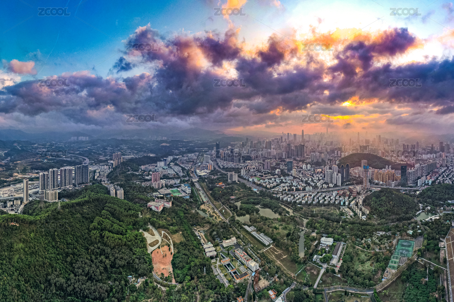 广州航拍,城市,广州日落,曙光,鸿鹄塔,麓湖公园,城市生态,湿地,越秀区,广州旅游