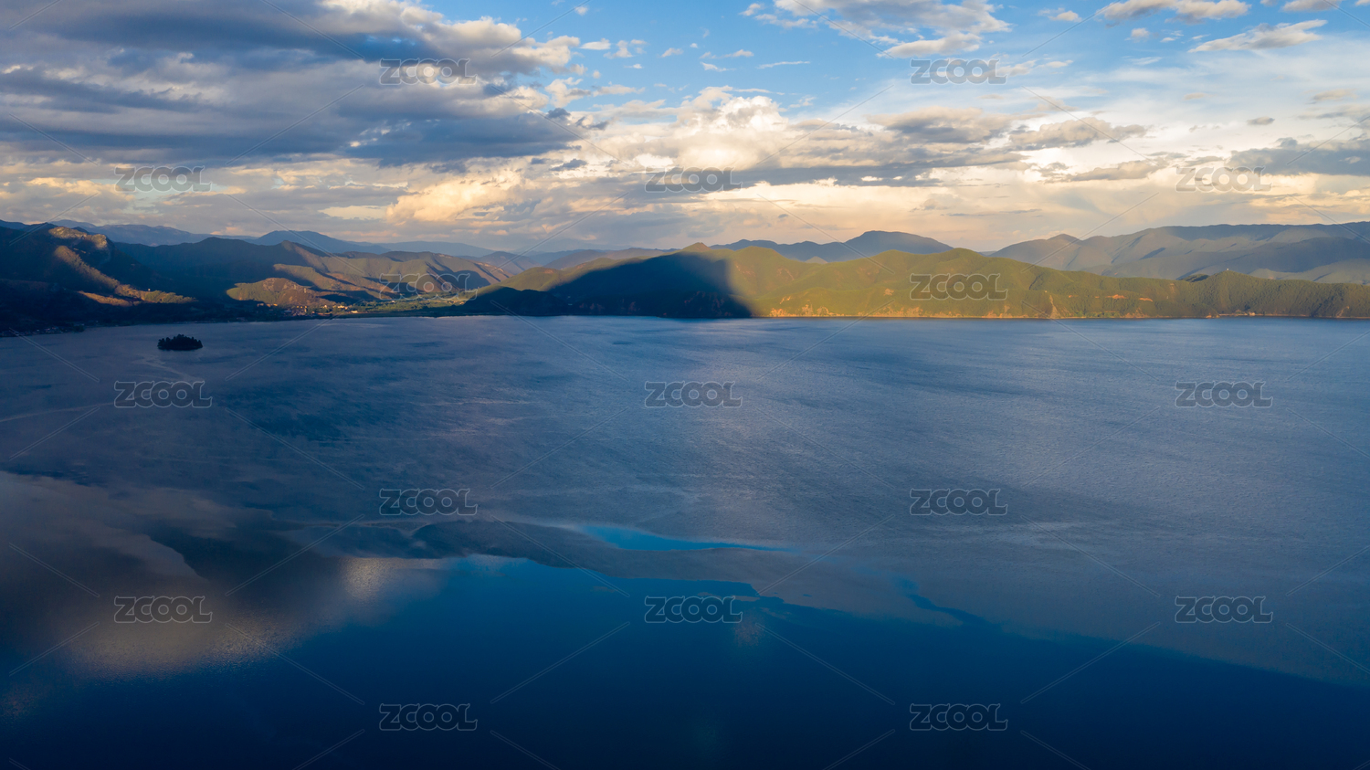 云南丽江宁蒗泸沽湖清晨航拍景色