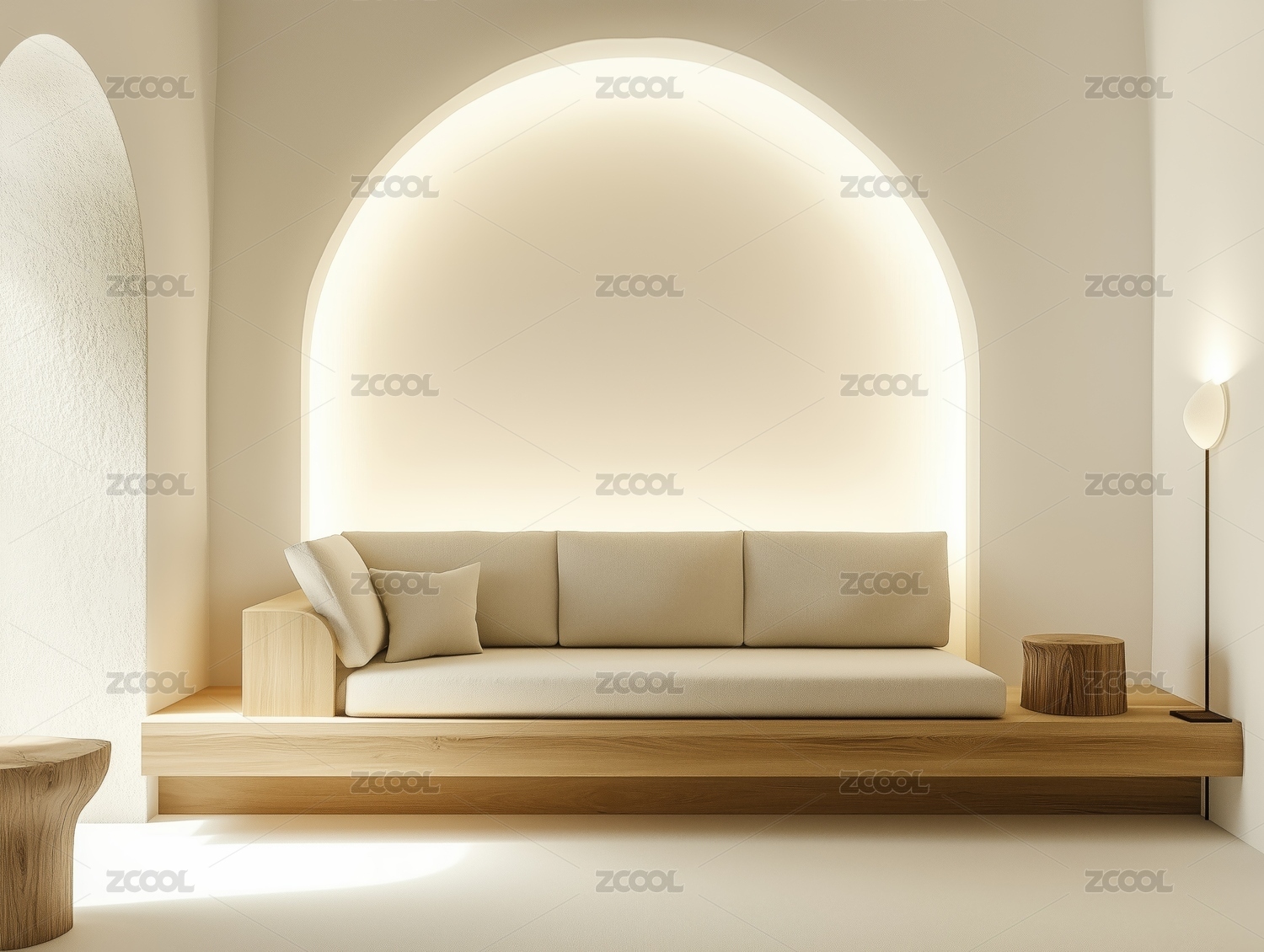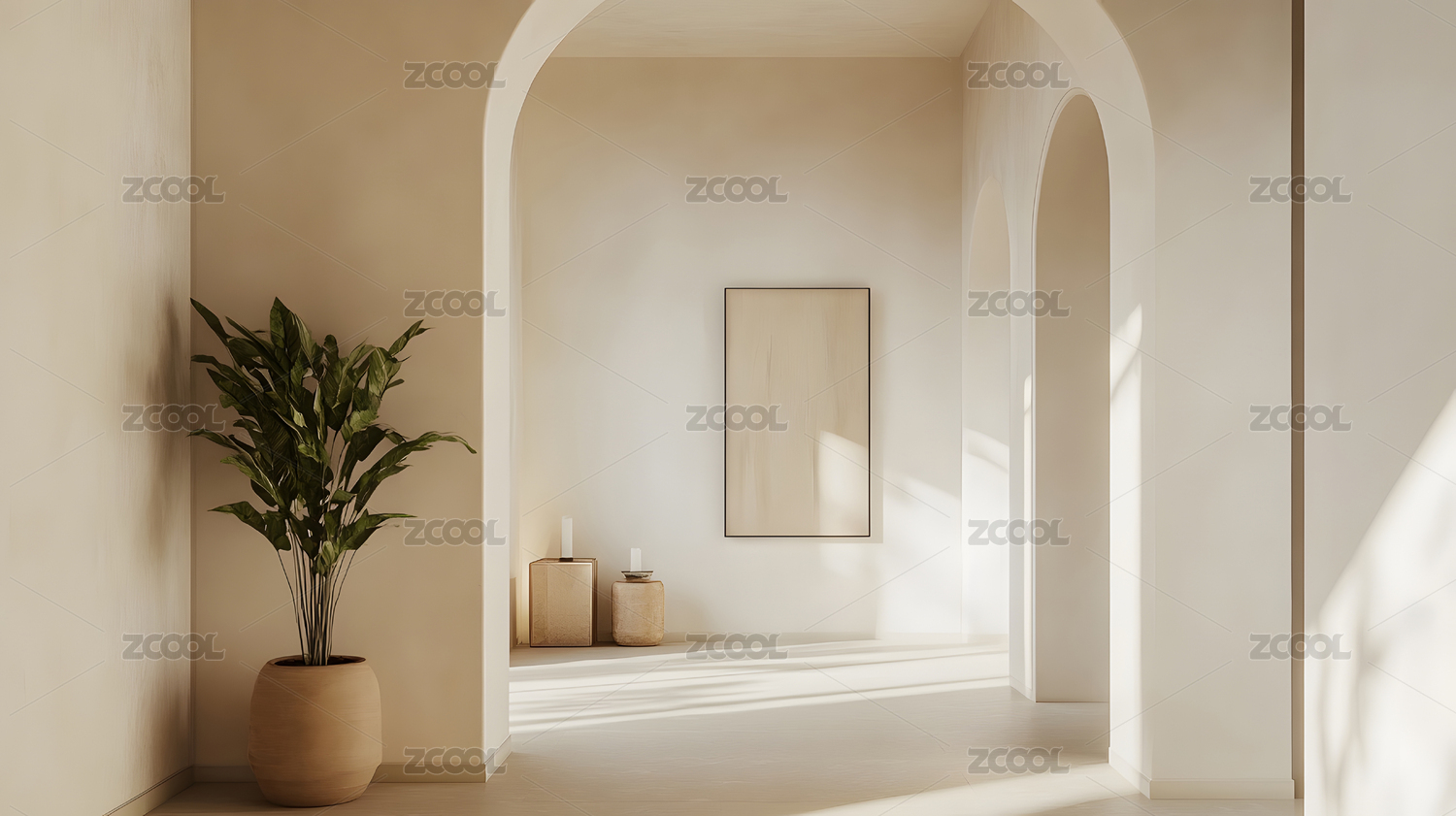 极简风格室内空间与拱形门廊