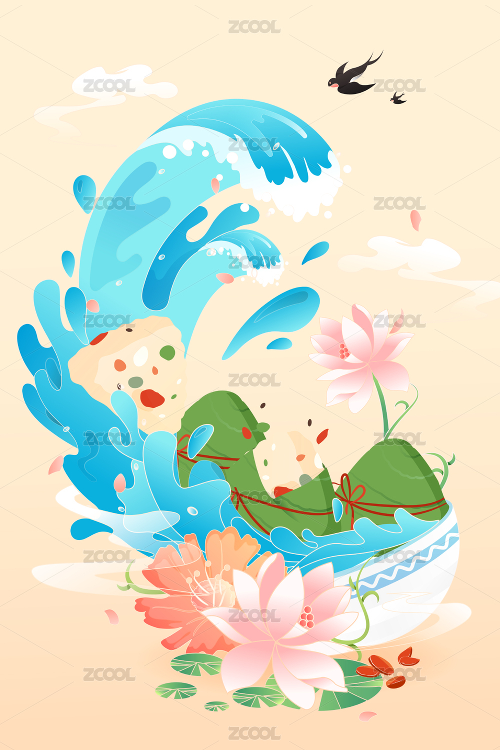 端午节划龙舟吃粽子喝雄黄酒中国风插画