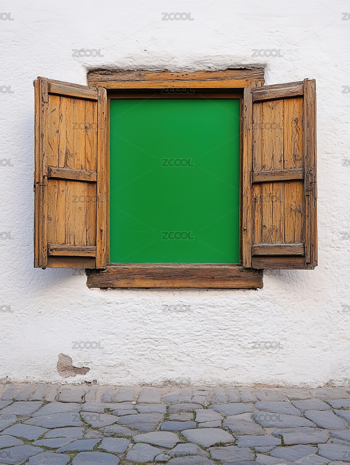 欧式古代砖墙墙面或水泥墙背景和木质门窗