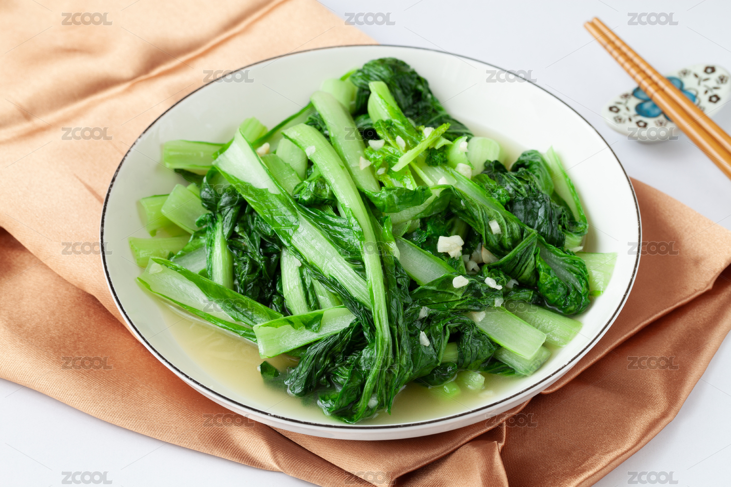 木桌背景一盘炒青菜蒜蓉炒菜心