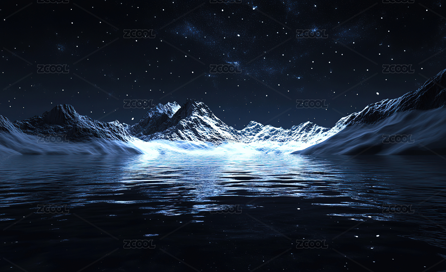 星空下的雪山和湖面