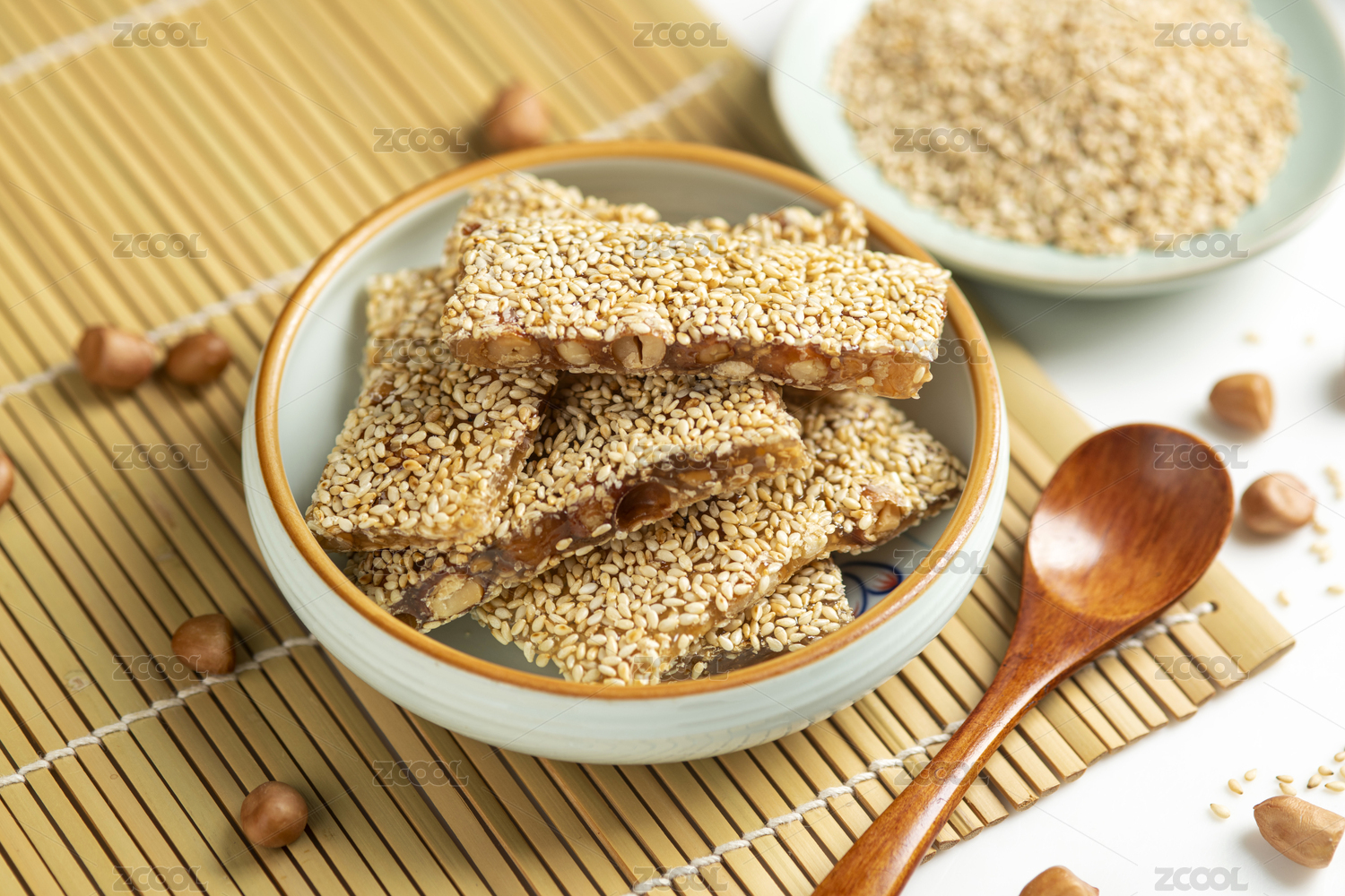 木底上放着芝麻软糖