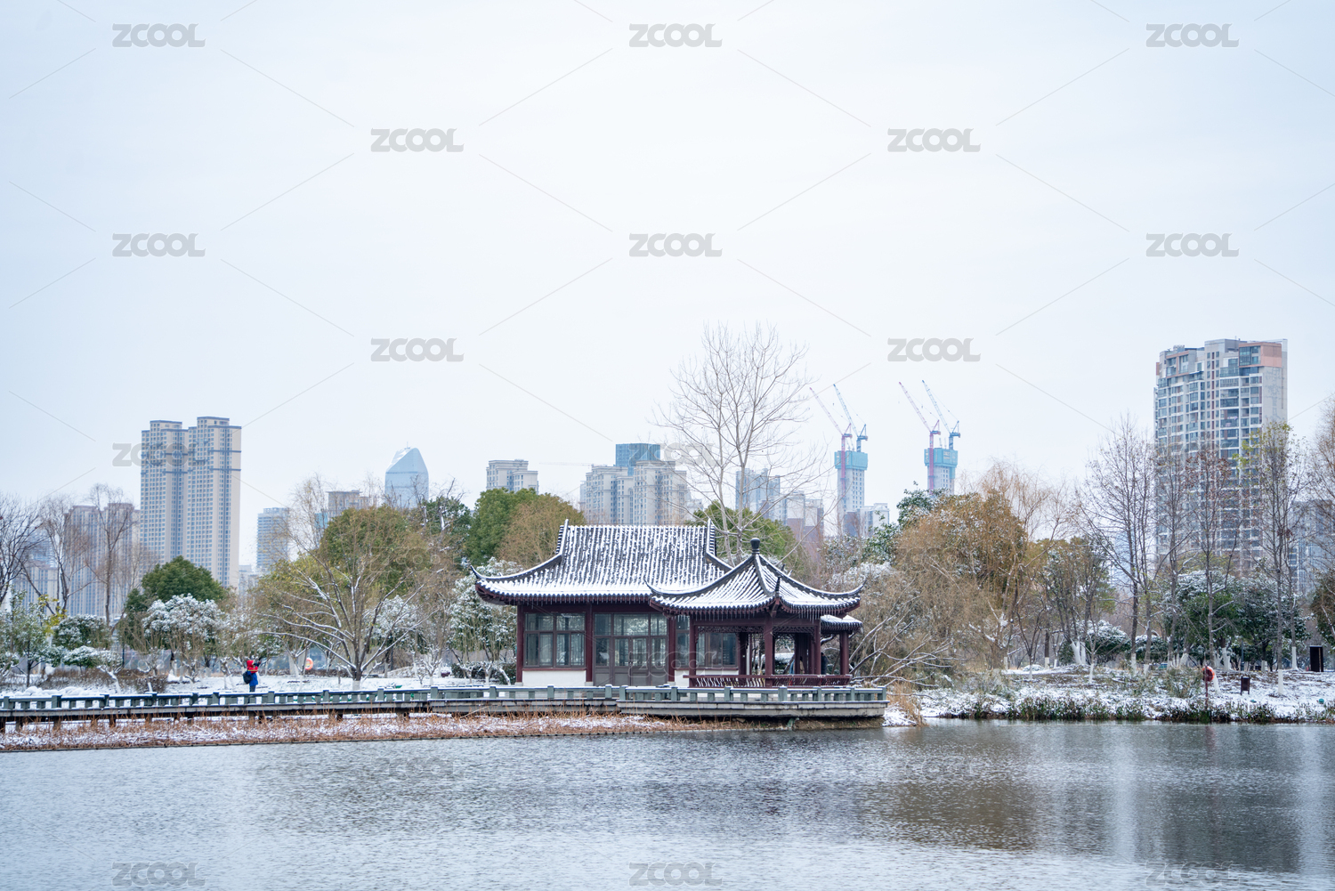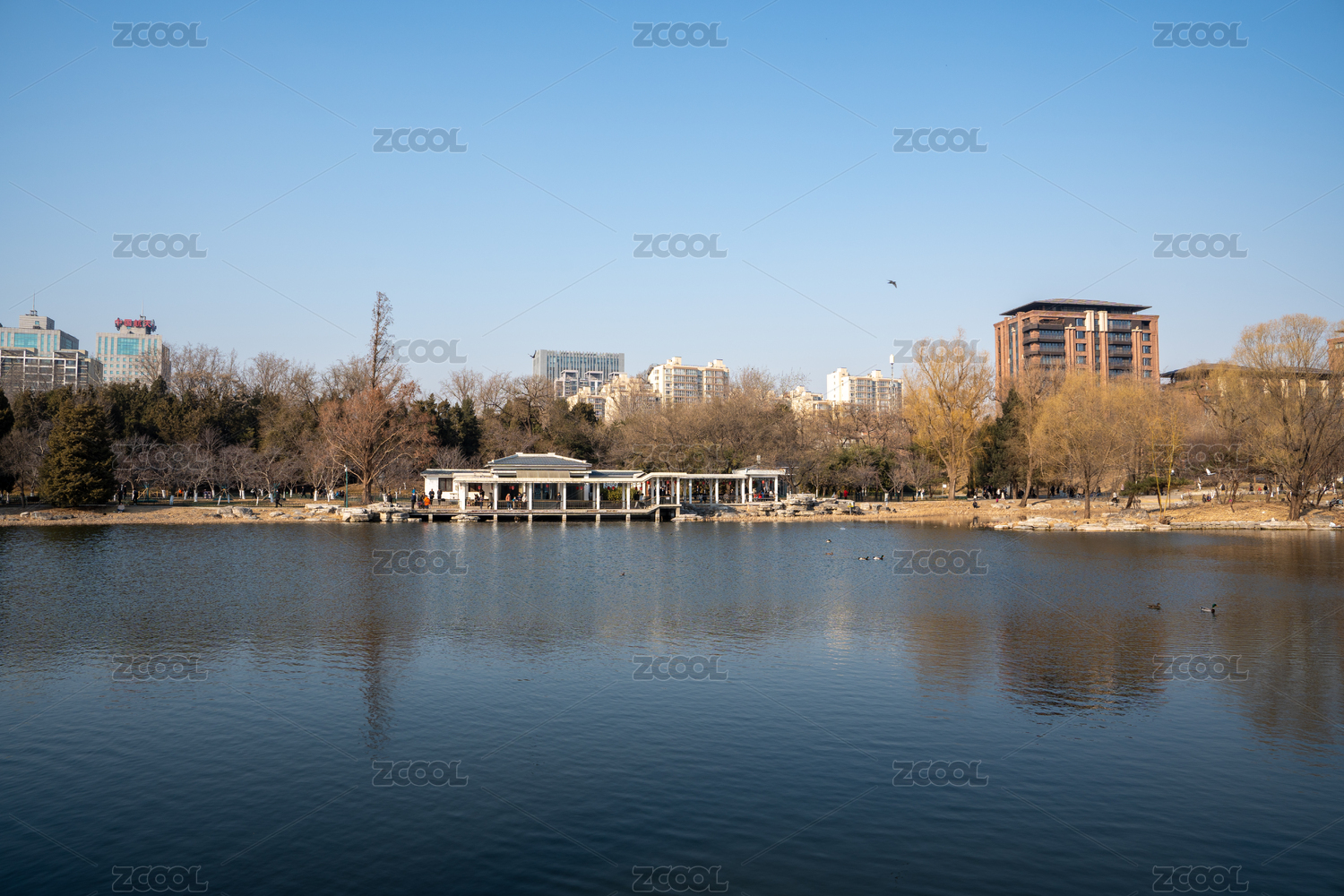 冬季,北方,城市,北方城市,湖边,石拱桥,公园,芦苇,杂草,建筑