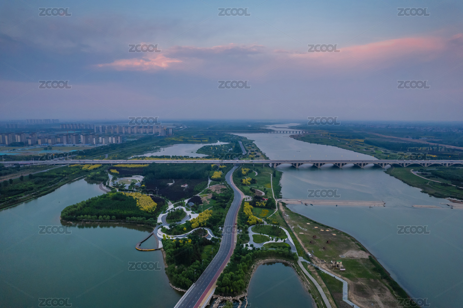 河北省石家庄市滹沱河生态旅游区航拍图片