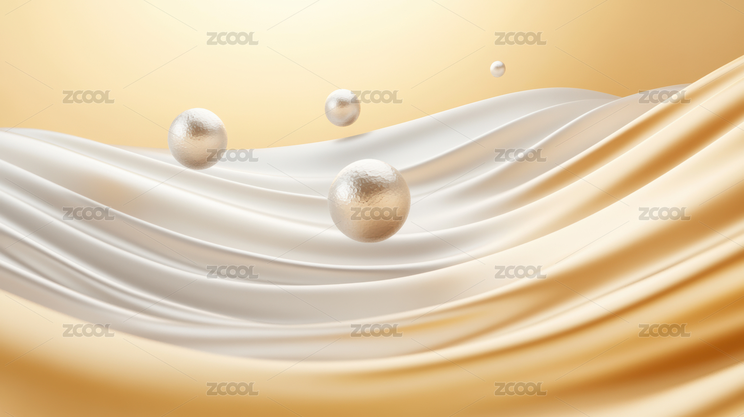 流动的金色液体与白色球体