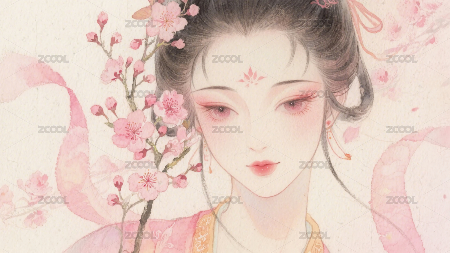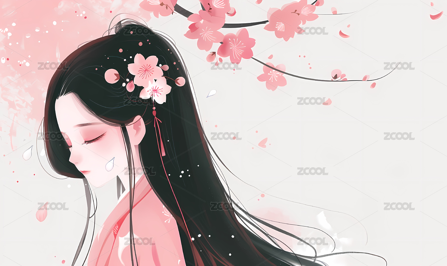 古典仕女图,樱花烂漫,唯美淡雅的意境