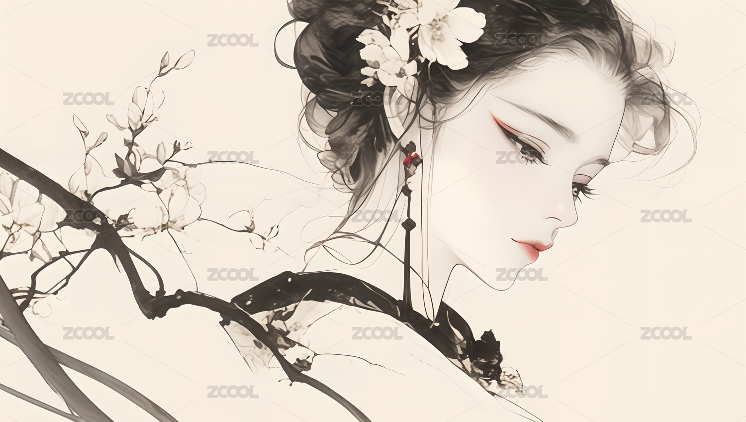 人物,水墨,风格,传统,画风,插画,写意,渐变,彩色,墨迹