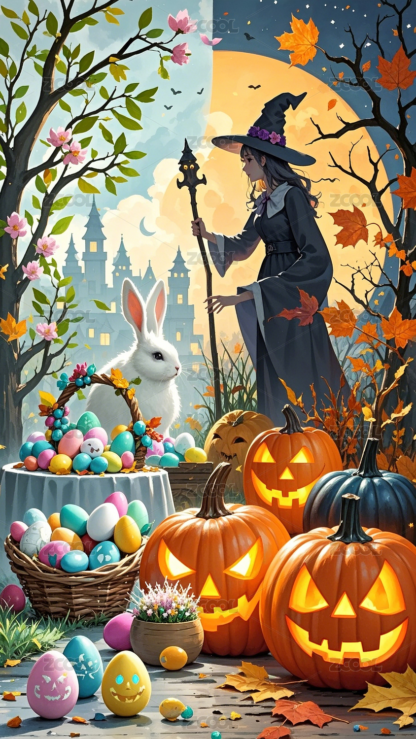 万圣节,节日,恐怖,诡异,阴森,女巫,幽灵,黑猫,骷髅,鬼怪