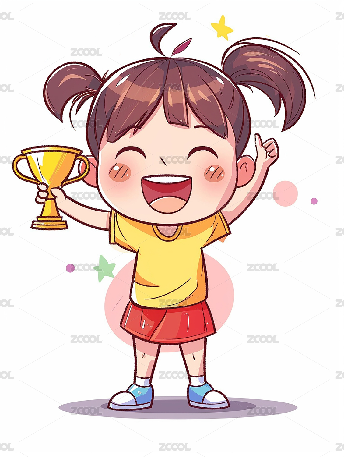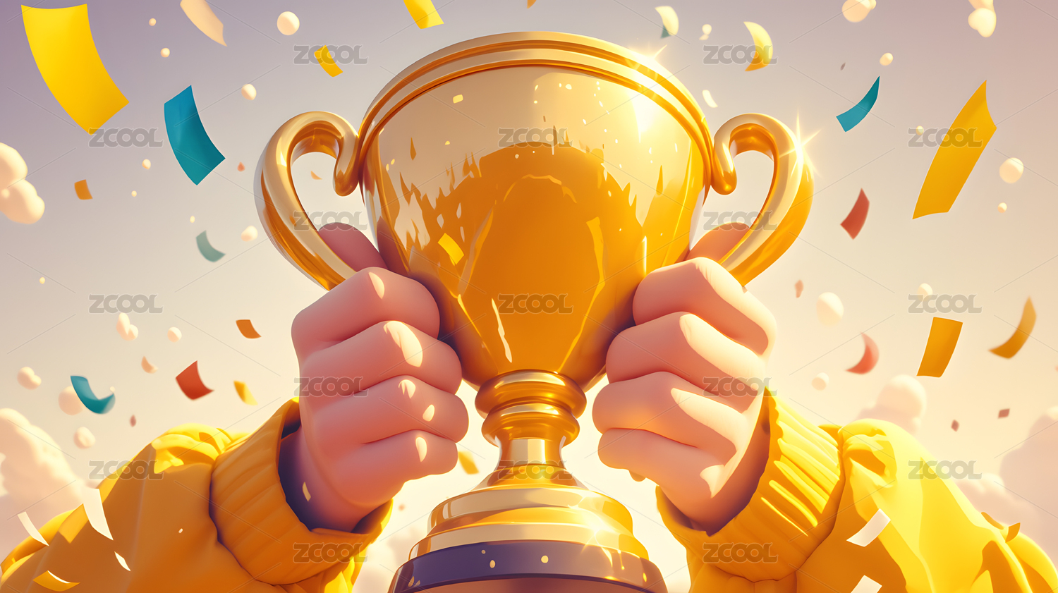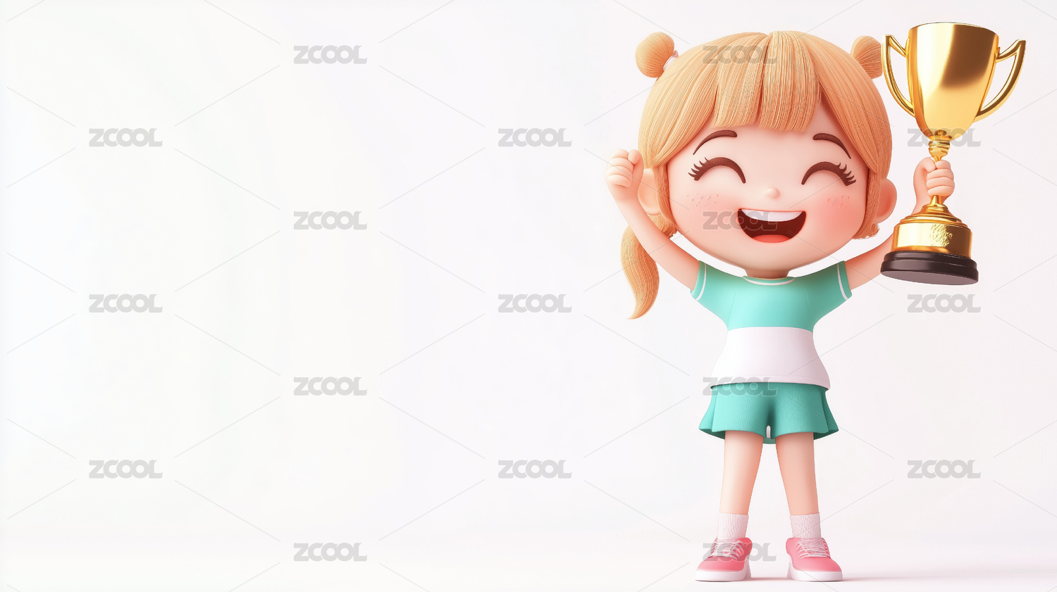 3D卡通风格全身头像,拿着奖杯的迪士尼风