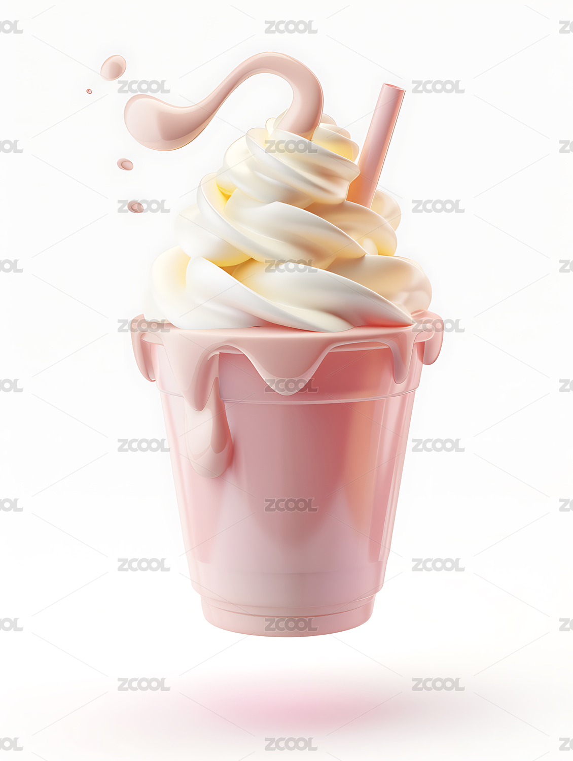 冰块奶茶饮品插画,餐饮美味奶茶杯