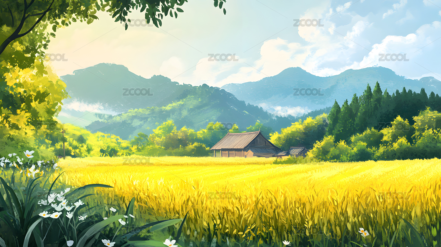 乡村,农村,田园,风光,插画,风景,户外,自然,种植,卡通