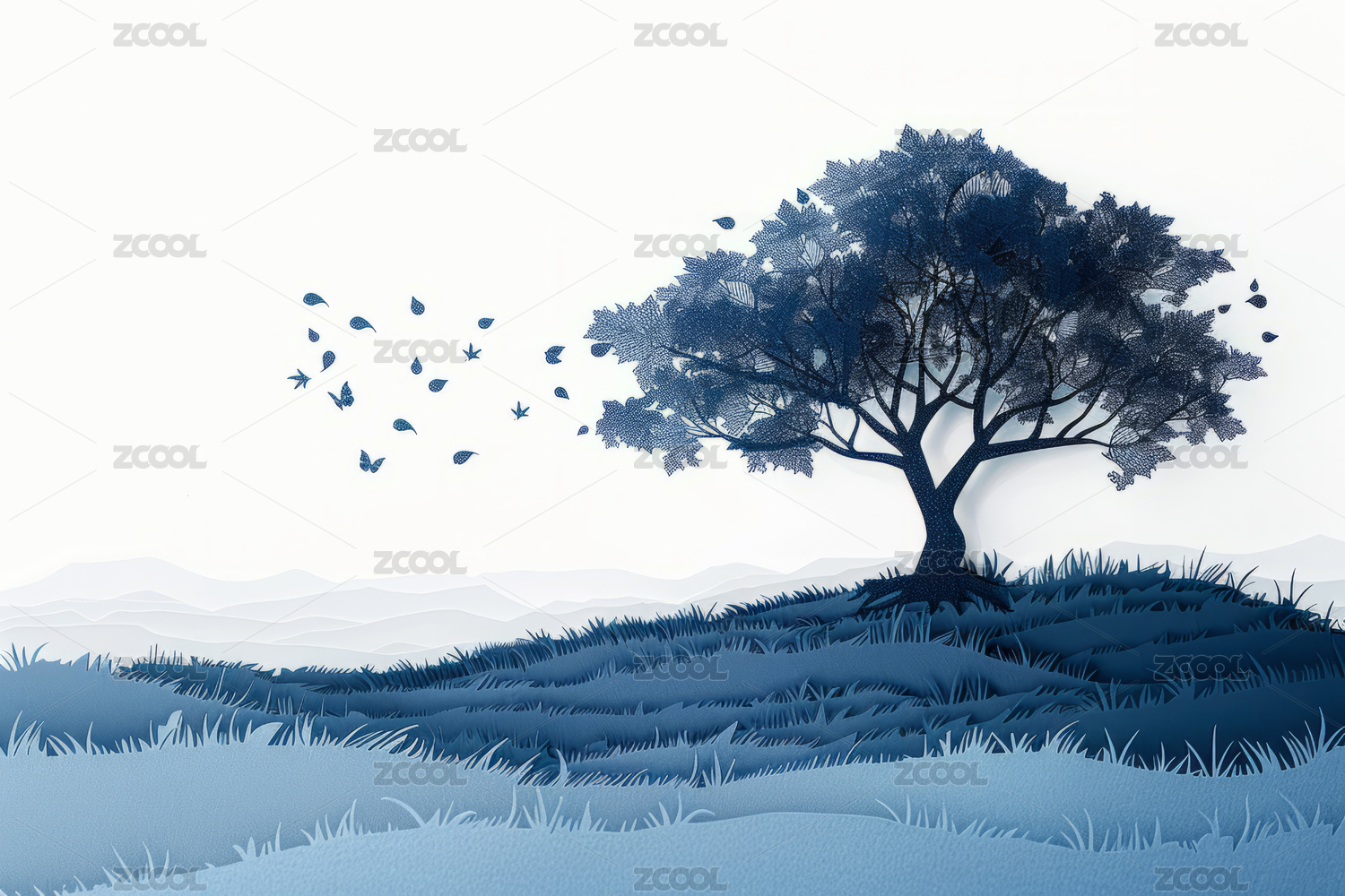 绿色草地上的一棵树插画
