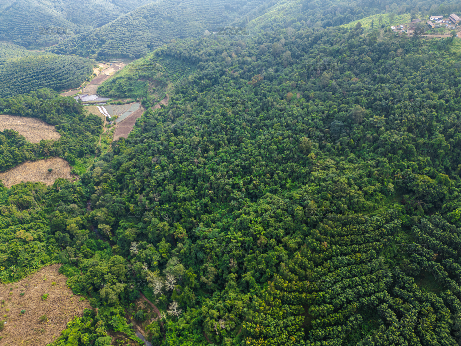 航拍山上的树林