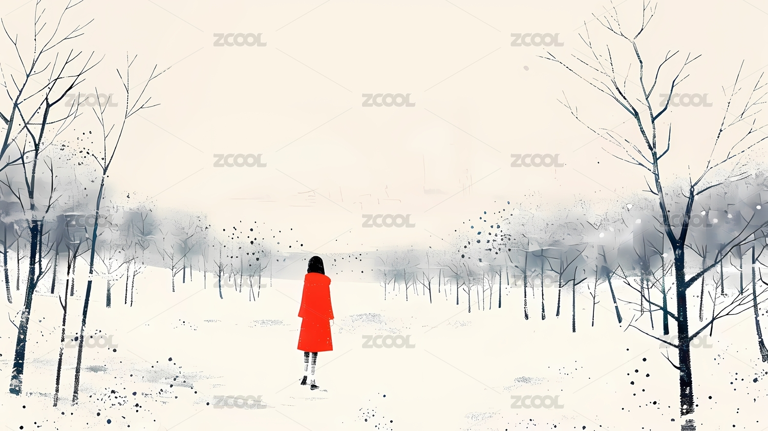 女孩,行李箱,背影,猫咪,冬天,下雪