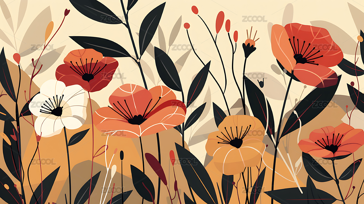 花,植物,花草,插画,花朵,复古,装饰,自然,叶子,壁纸