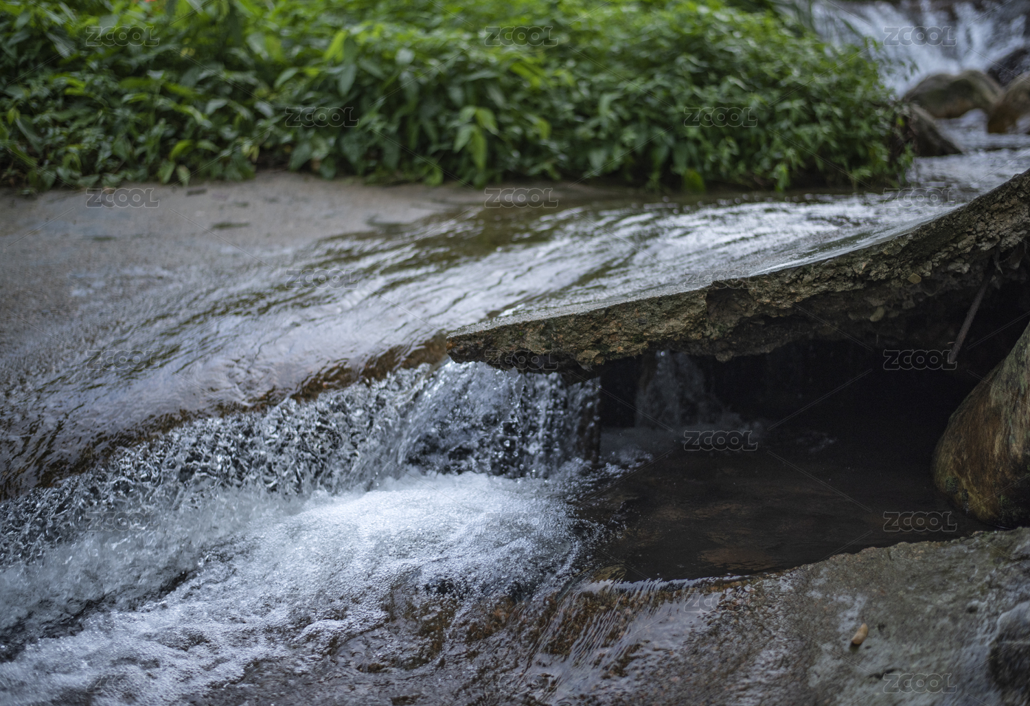 杭州灵隐寺 绿意盎然的溪水瀑布