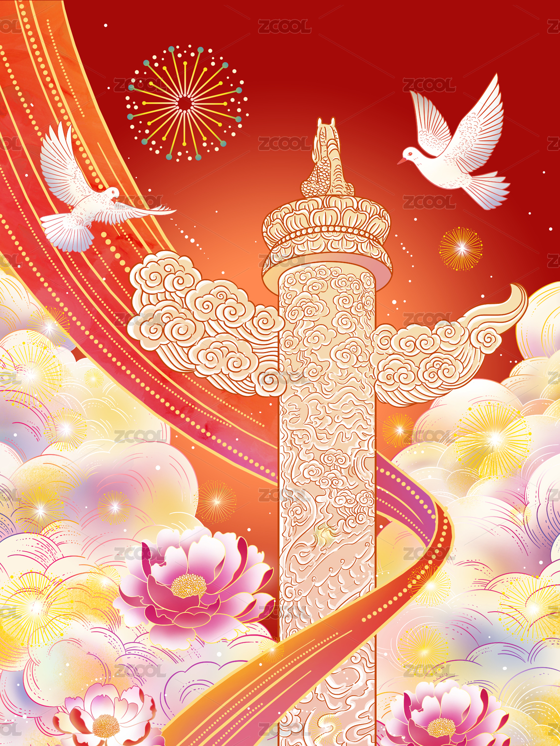 国庆节华表国潮插画元素