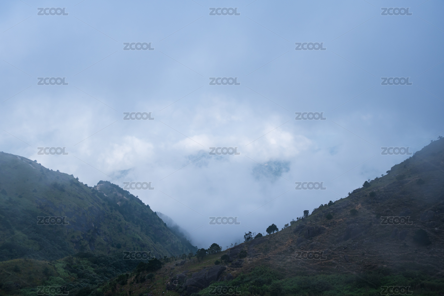 广东省阳江市阳春双滘鸡笼顶风光,大雾笼罩着的山脉