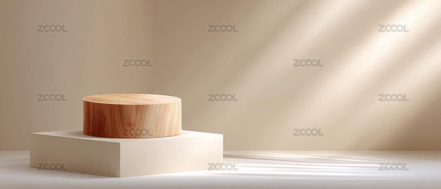 简约木质圆柱与白色展台的光影艺术