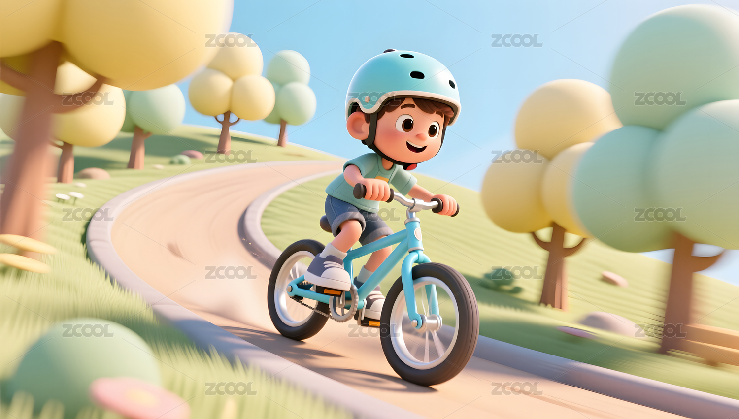 戴头盔骑自行车的女孩3D骑行戴头盔插画