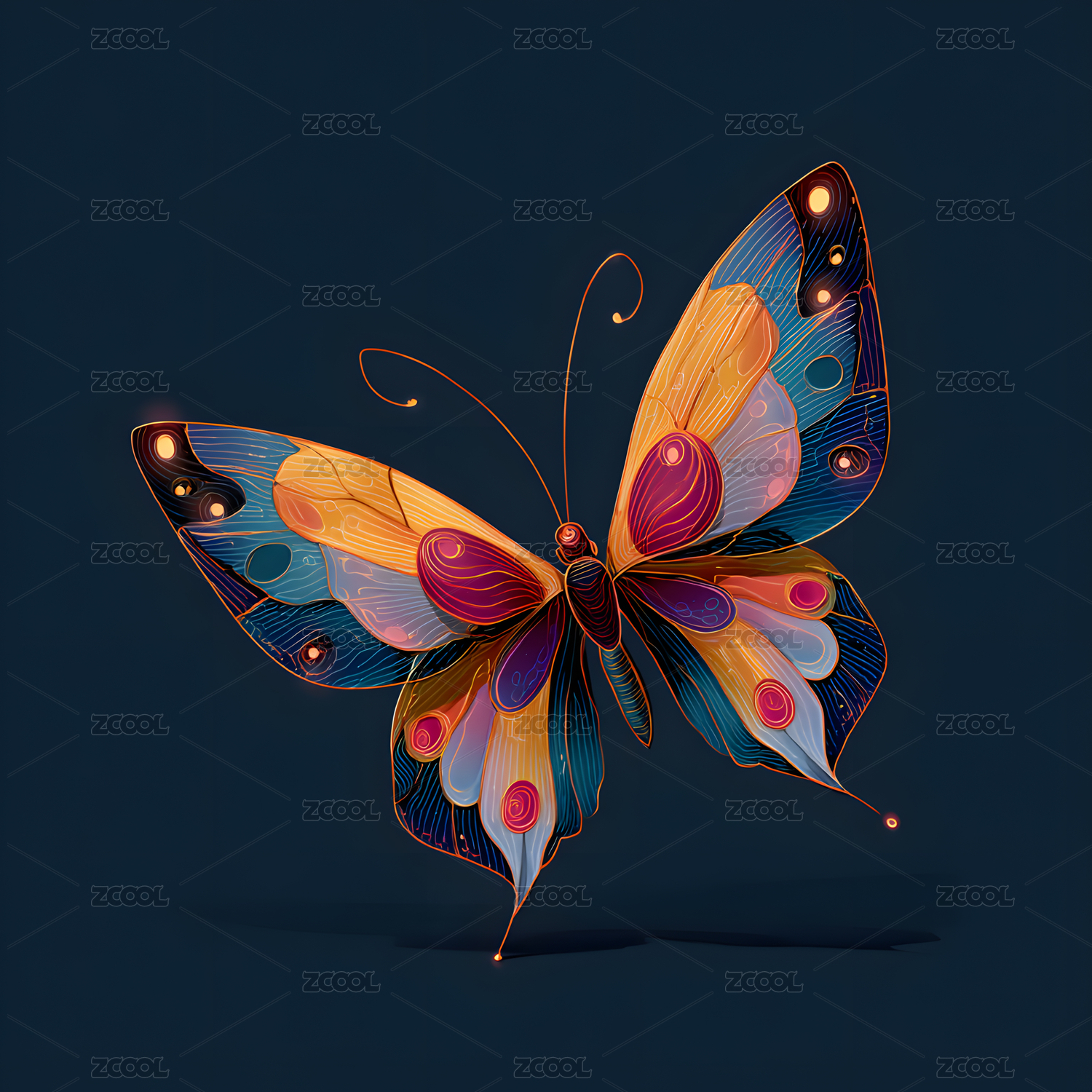 白底明亮一只展翅的彩色蝴蝶插画绘画