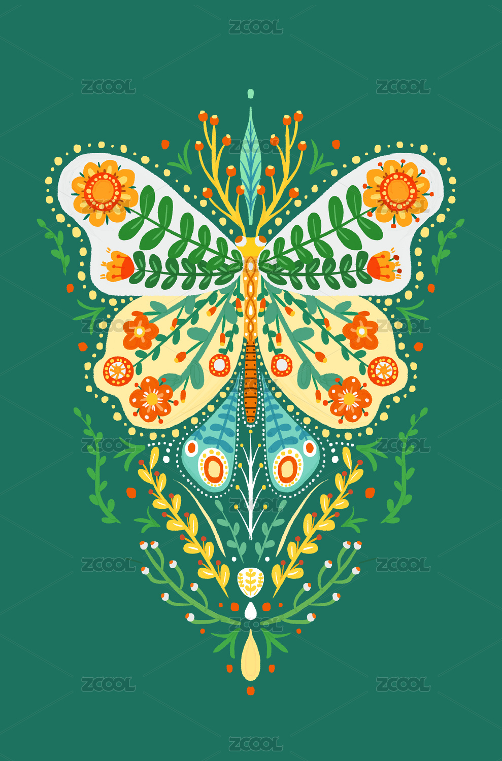 站酷纹样-中国传统服饰图案纹样刺绣蝴蝶