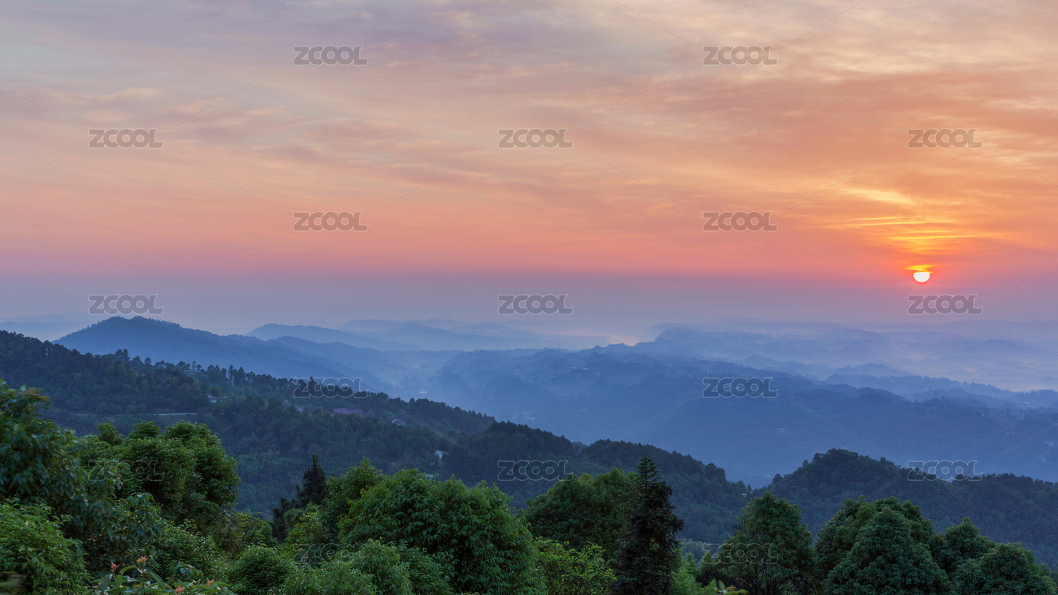 日出朝霞高山沟壑自然风光